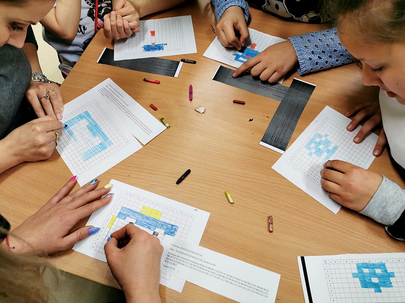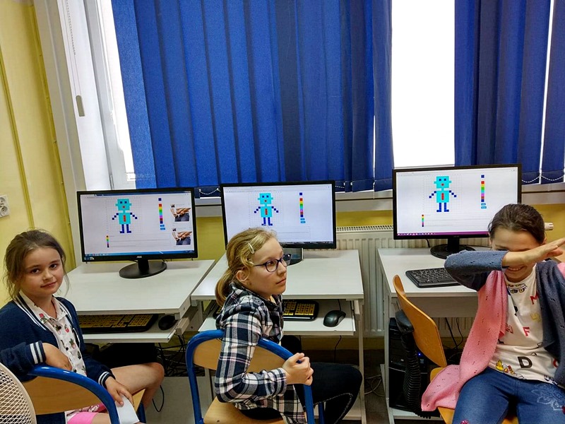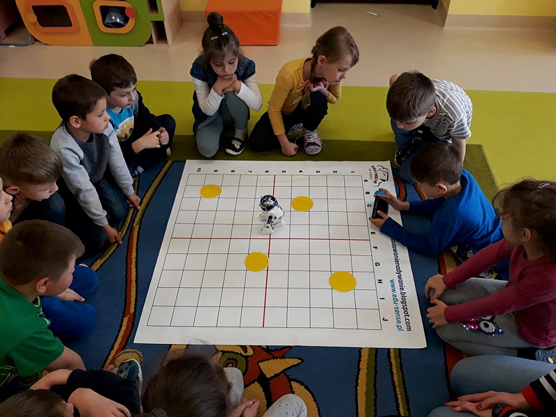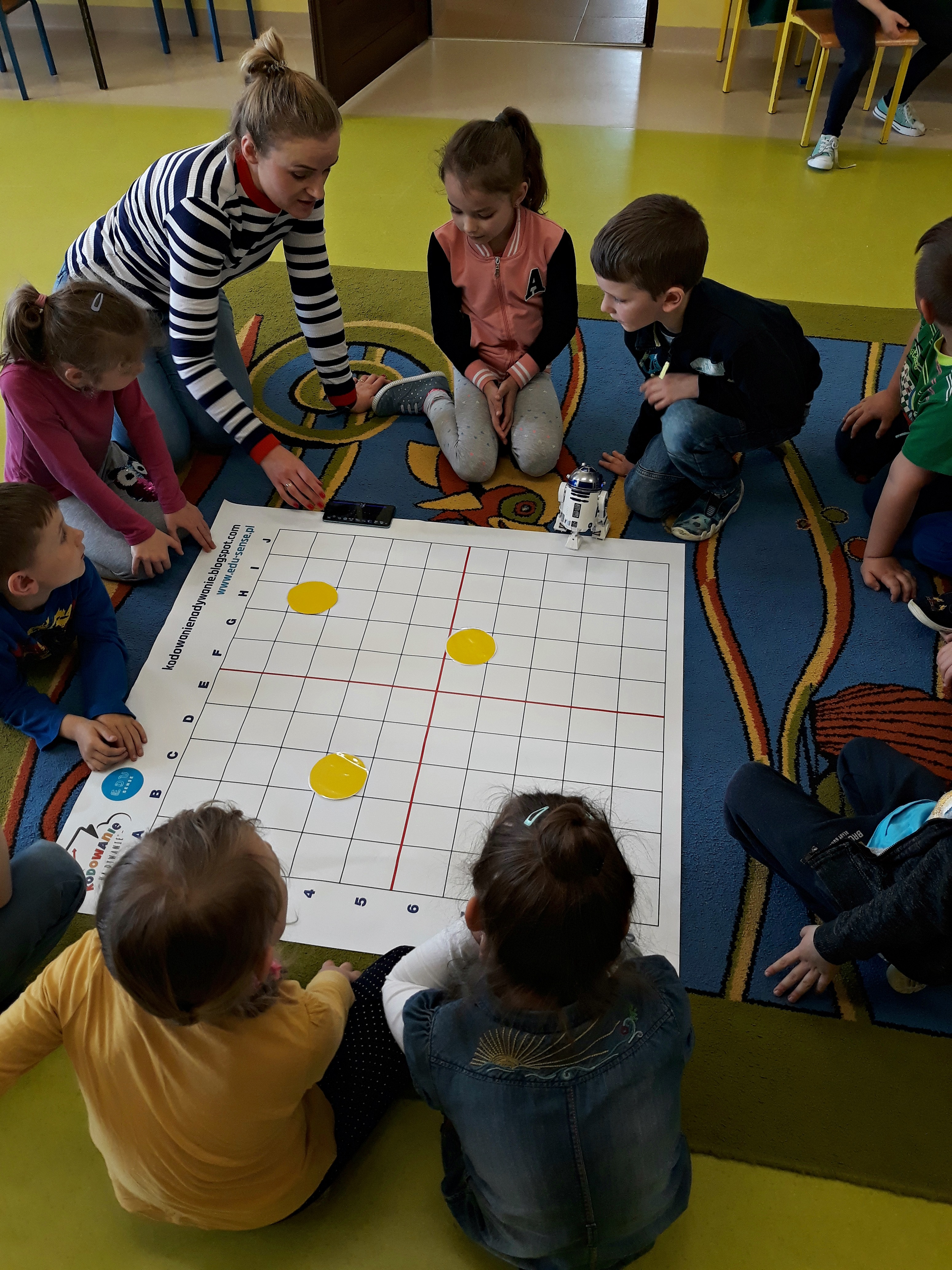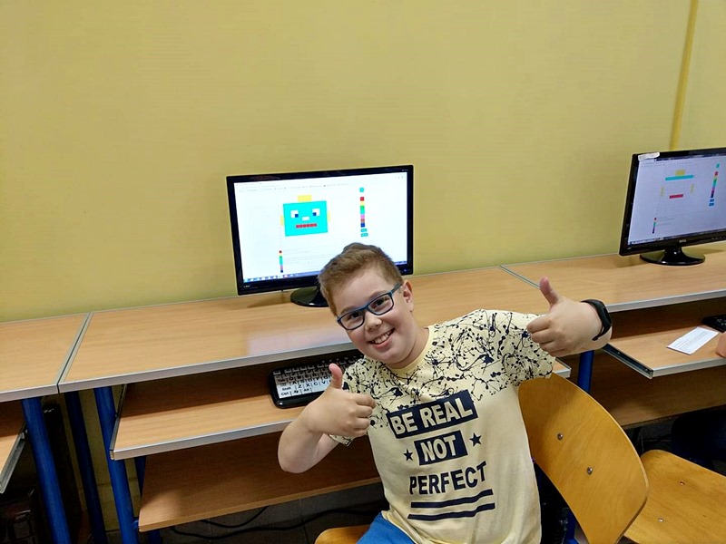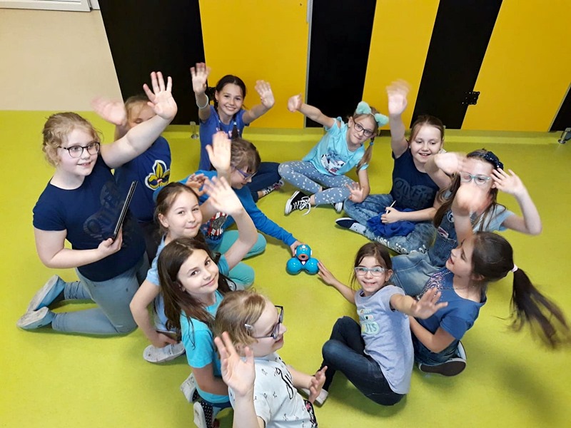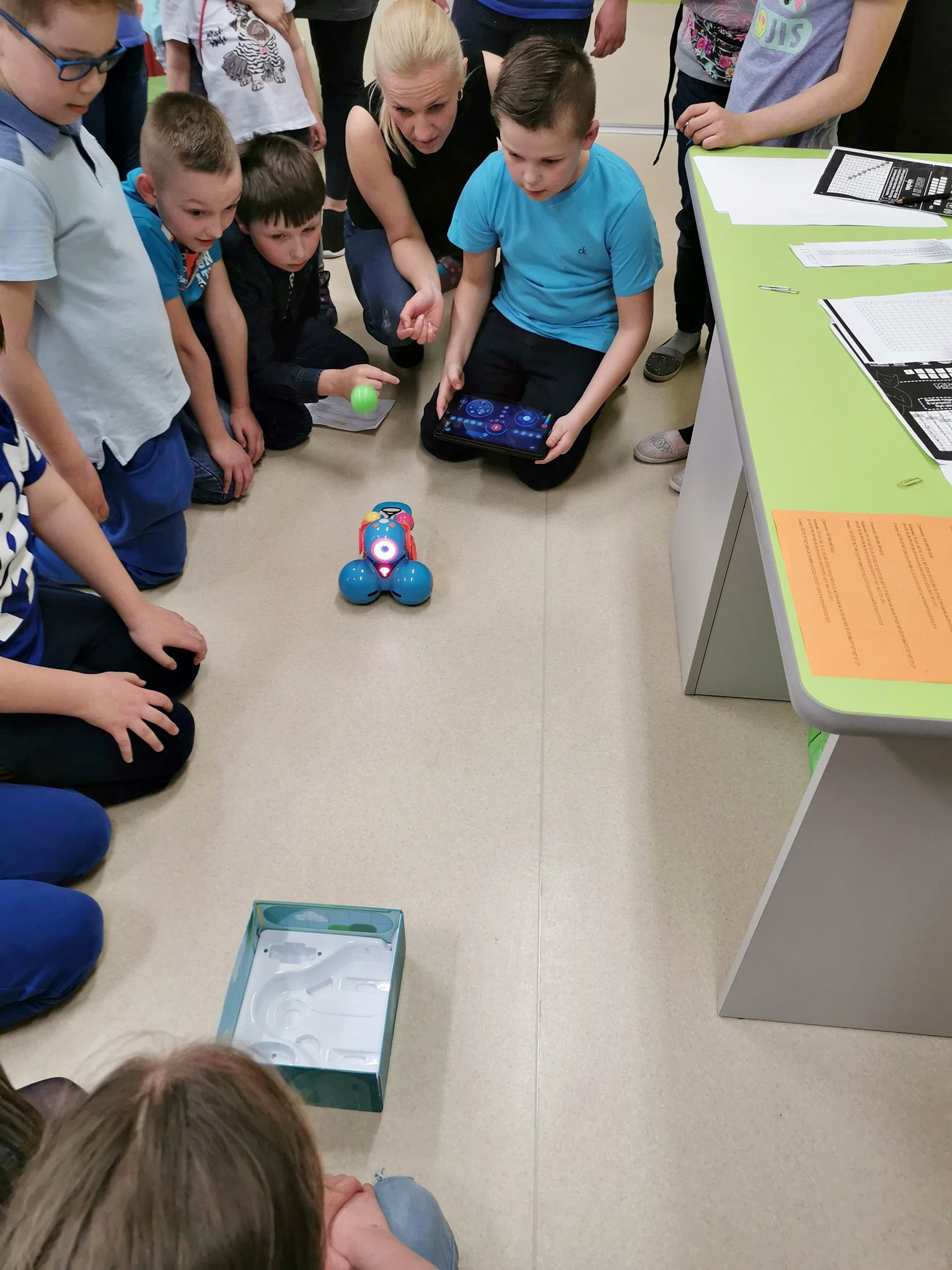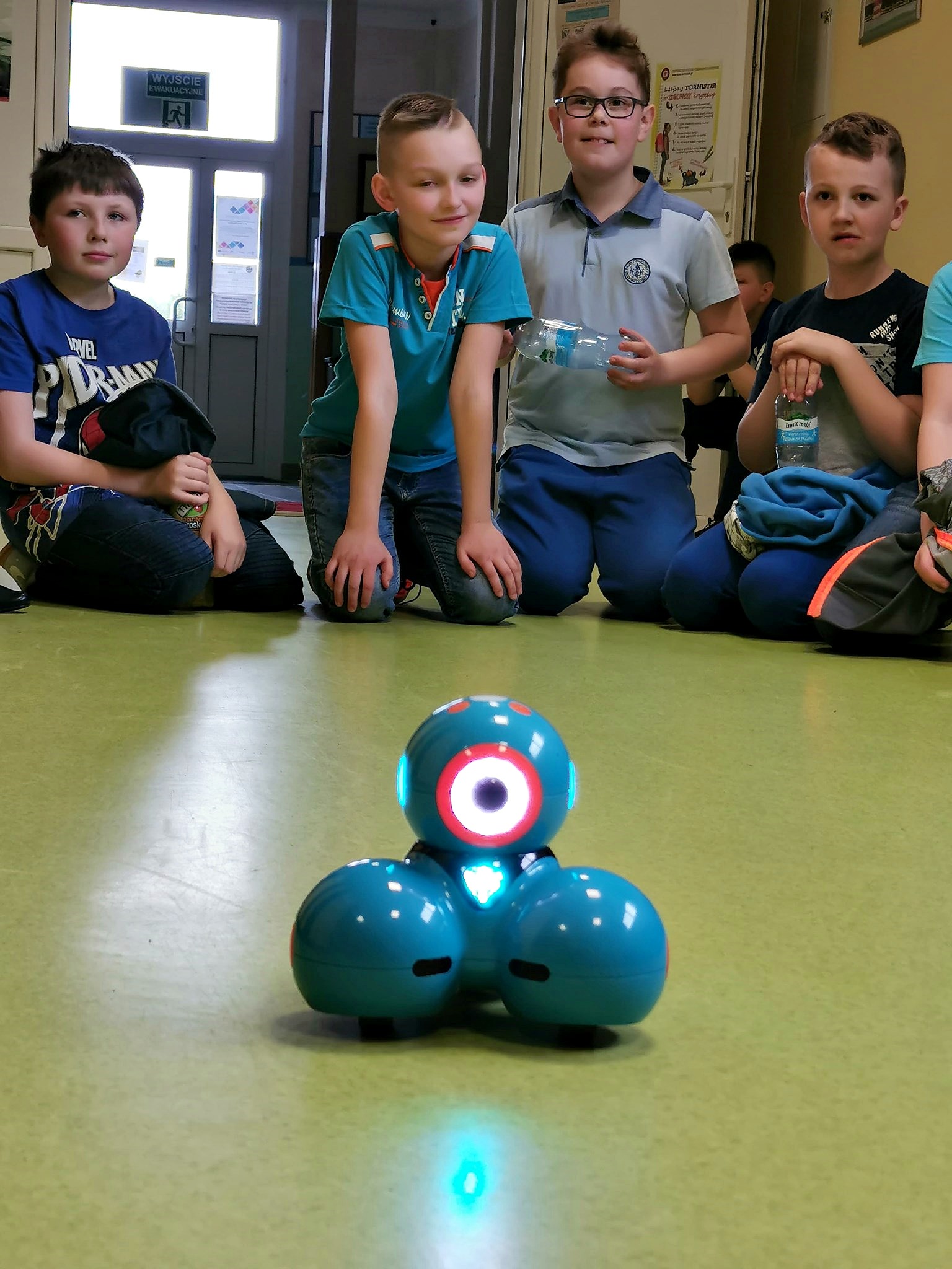 Nowoczesne nauczanie w naszej szkole to nie tylko wykorzystanie technologii na lekcjach, to również wprowadzanie uczniów w świat kodowania i programowania. Dzieci poznały podstawy programowania na różnych płaszczyznach (na papierze, macie, tablicy interaktywnej, komputerze czy tablecie). Największą radość przyniosły jednak zajęcia z użyciem robotów, szczególnie, że każdy mógł samodzielnie zaprogramować trasę, poprowadzić robota, a nawet nauczyć tego swoją mamę bądź tatę na zajęciach otwartych z rodzicami. Staraliśmy się rozwinąć wśród uczniów tę kompetencję, a rodzicom pokazać korzyści z nauki programowania i zachęcić ich do wspierania dzieci w nauce tym sposobem.