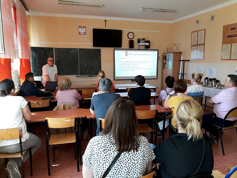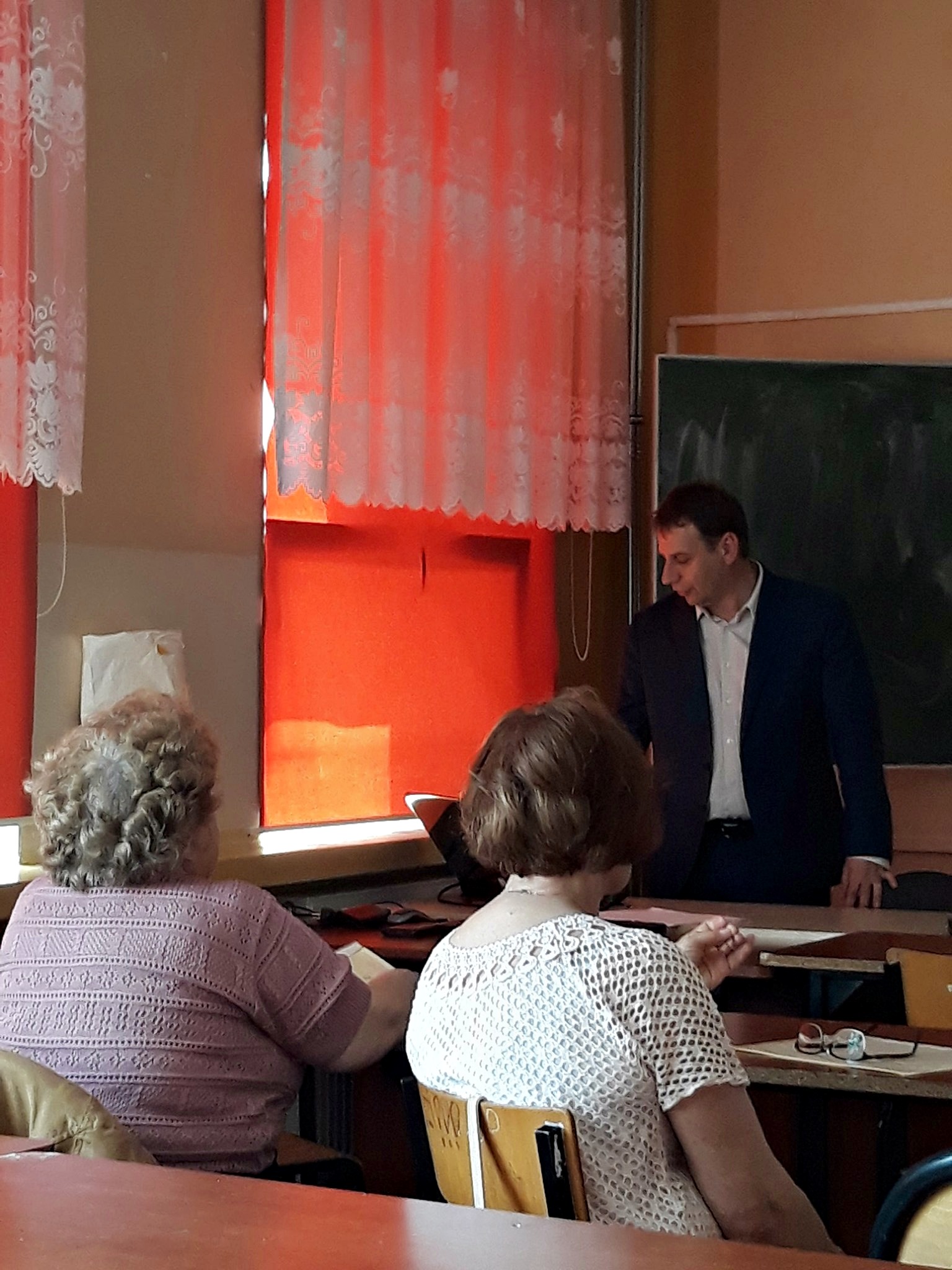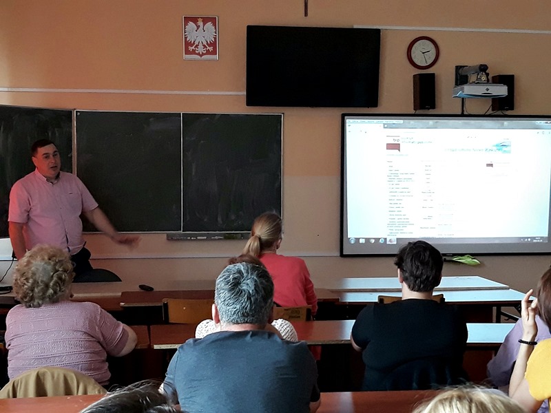 Naszym założeniem był również wzrostu kompetencji cyfrowych osób dorosłych, a jednocześnie chcieliśmy wzmocnić zaufanie wobec działań podejmowanych w sieci. Zorganizowaliśmy spotkanie, na którym prelegenci omawiali zagadnienia związane z ofertą usług życia codziennego dostępną przez Internet. Nasz nauczyciel informatyki – pan Karol Markowski – przedstawił jakie są zagrożenia wobec dzieci związane z ich aktywnością w Internecie i wskazał na sposoby ich unikania. Poza tym, w bardzo przystępny sposób, omówił korzystanie z e-usług prywatnych i publicznych oraz pokazał, w jaki sposób korzystać z komputera i telefonu komórkowego w bezpieczny sposób. Uczestnicy mieli również okazję poznać tajniki e-bankowości, które zaprezentował na przykładzie Spółdzielczego Banku Rozwoju, pan Krzysztof Kamiński. Zachęcił on do korzystania z usług bankowości elektronicznej oraz pokazał w jaki sposób robić to w sposób niezagrażający naszym finansom. Usługi e-administracji oferowane przez samorząd naświetlił słuchaczom przedstawiciel Urzędu Gminy Nowe Piekuty – pan Leszek Dąbrowski. Pokazał sposoby poszukiwania informacji oraz zachęcił do spróbowania załatwiania spraw urzędowych przez Internet. Po spotkaniu był jeszcze moment na wymianę doświadczeń i spostrzeżeń związanych z korzystaniem z nowoczesnych technologii i bezpieczeństwem w sieci.