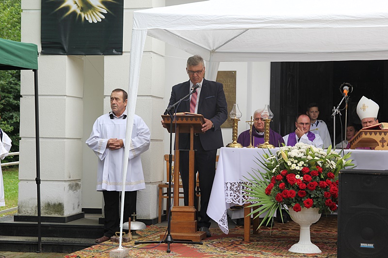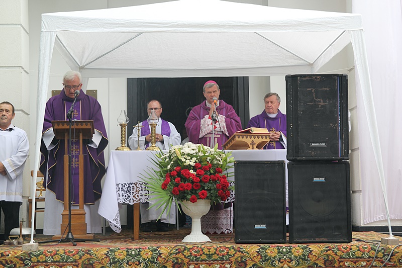 Uroczystość rozpoczęła się modlitwą różańcową. Kolejnym etapem obchodów było wprowadzenie pocztów sztandarowych oraz Msza Święta w intencji zamordowanych celebrowana przez Biskupa Tadeusza Bronakowskiego.