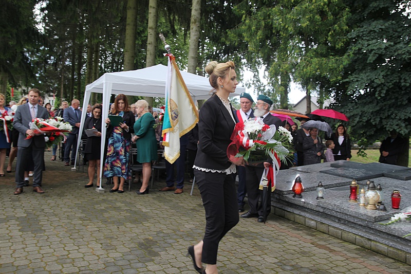 Po Mszy Świętej przybyłe delegacje złożyły kwiaty i zapaliły znicze na grobach pomordowanych mieszkańców.