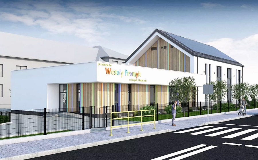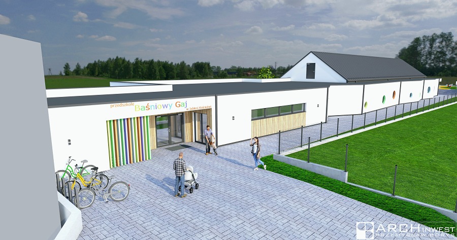 Budowa przedszkola łącznie ze żłobkiem w Jabłoni Kościelnej przewiduje budowę budynku parterowego połączonego łącznikiem z istniejącą halą sportową. Budynek będzie w pełni dostosowany do potrzeb dla osób z niepełnosprawnościami. Zgodnie z projektem w nowo projektowanym budynku przedszkola znajdowały się będą trzy sale przedszkolne, jedna sala żłobkowa, stołówka z zapleczem kuchennym z funkcja wydawania posiłków i cateringu oraz pozostałe pomieszczenia sanitarno-higieniczne i zaplecze potrzebne do prawidłowego i samodzielnego funkcjonowania obiektu. W pomieszczeniach przedszkolnych będą prowadzone 3 oddziały przedszkolne w zakresie opieki nad dziećmi w wieku 3-5 lat. W każdej z 3 zaprojektowanych sal może przebywać grupa dzieci do 25 osób (oraz opiekun i personel pomocniczy. Każda z sal ma bezpośredni dostęp do węzła sanitarnego oraz indywidualny magazynek na pomoce dydaktyczne. W części żłobka będzie prowadzony 1 oddział w zakresie opieki nad dziećmi w wieku do lat 3. W nowo projektowanym budynku będę prowadzone zajęcia fizjoterapeutyczne, zajecie z psychologiem i logopedą.