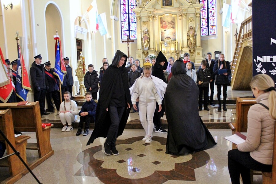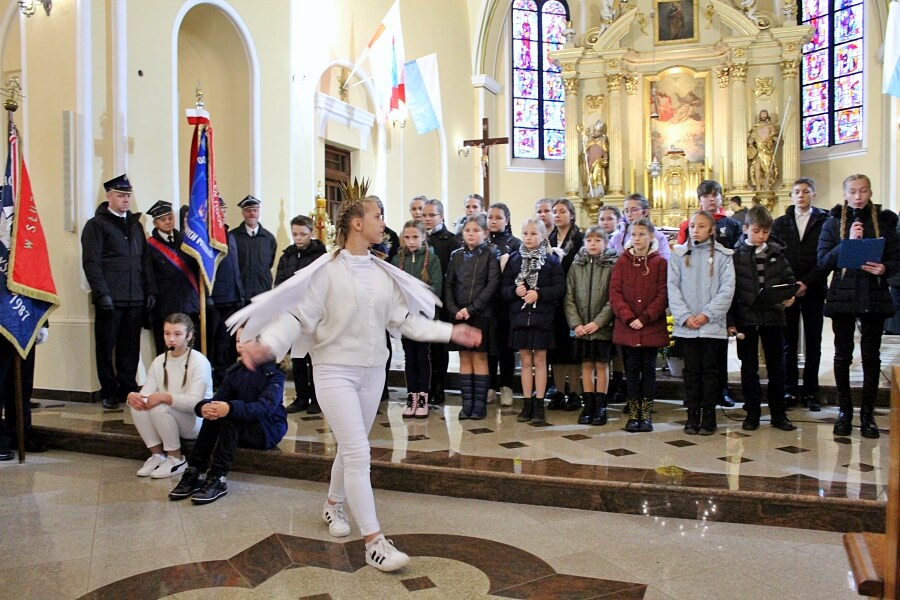 Po mszy świętej dzieci i młodzież ze Szkoły Podstawowej w Nowych Piekutach przedstawiły piękny montaż słowno – muzyczny. Następnie głos zabrał Marek Kaczyński Wójt Gminy Nowe Piekuty.