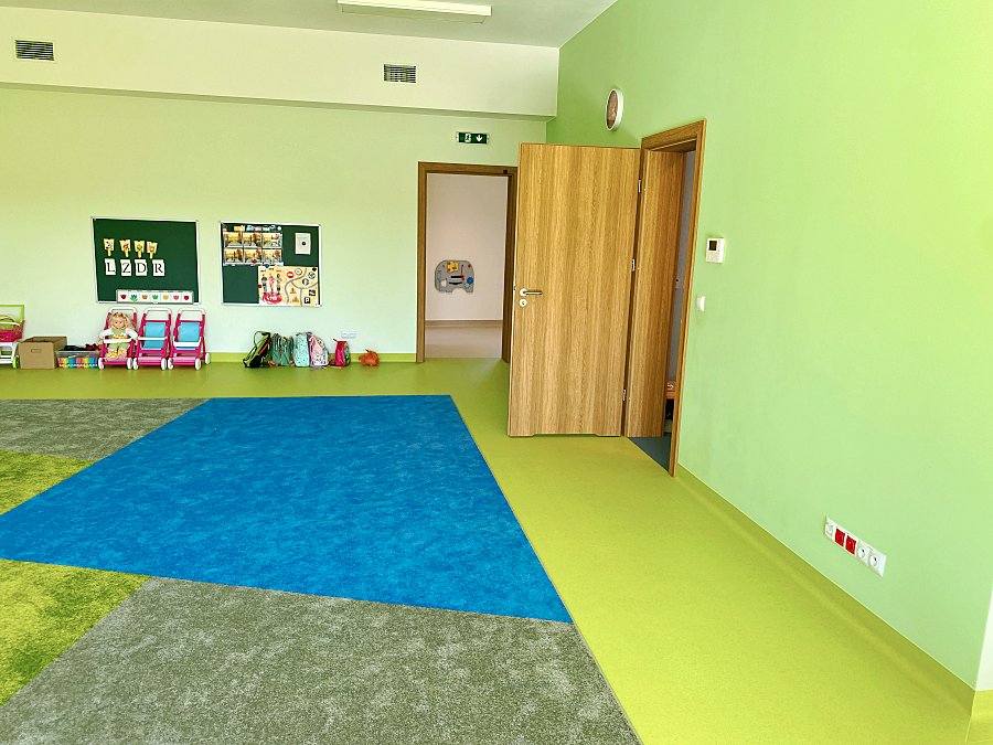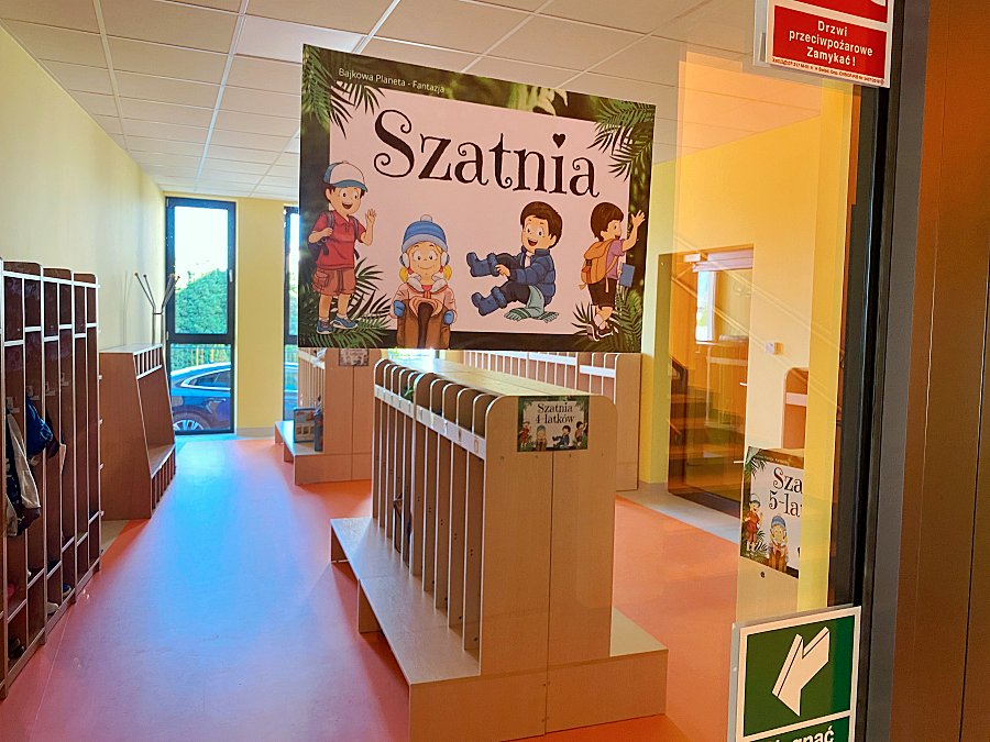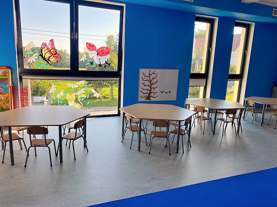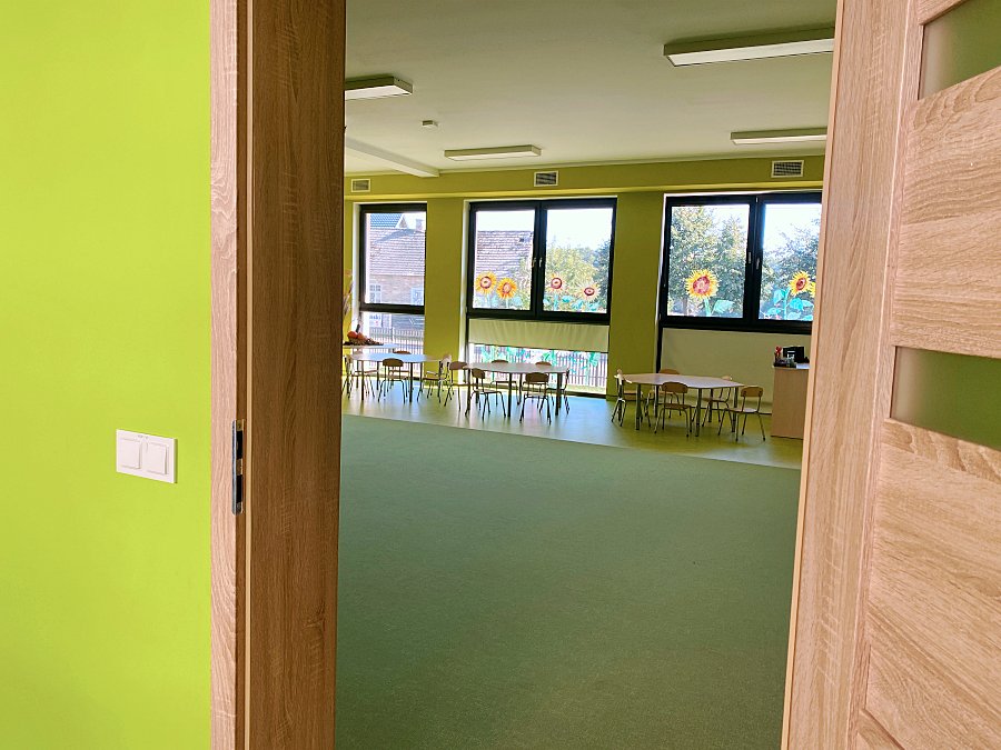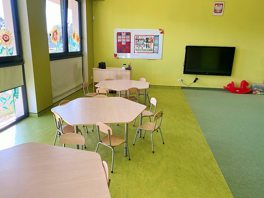 Placówka w Jabłoni Kościelnej jest parterowa, połączona łącznikiem z istniejącą halą sportową. W przedszkolu będą prowadzone 3 oddziały przedszkolne w zakresie opieki nad dziećmi w wieku 3-5 lat oraz sala żłobkowa.