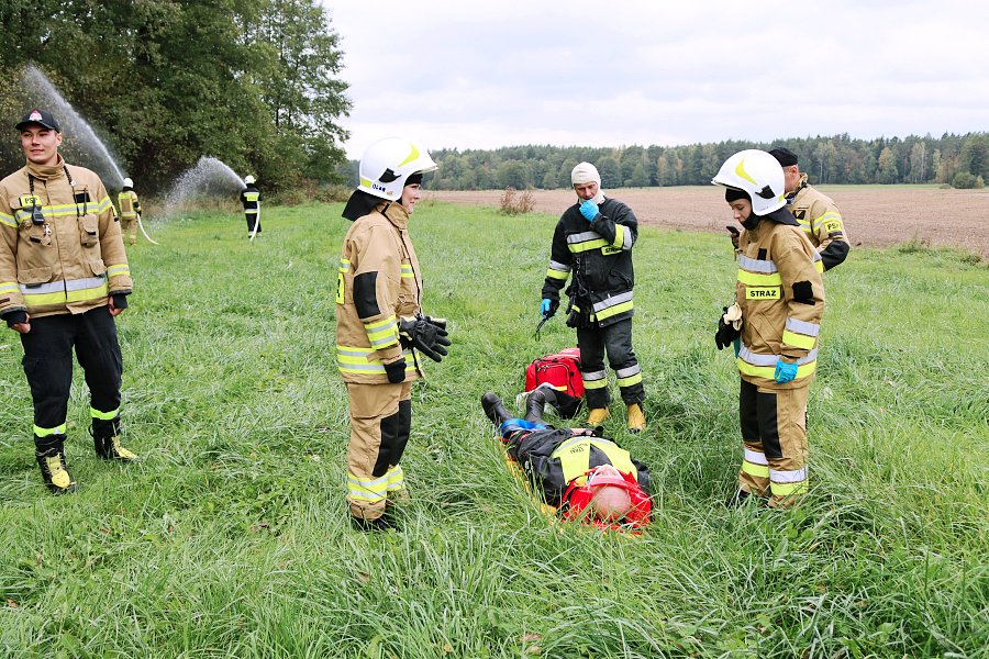 Scenariusz ćwiczeń obejmował dwa główne zadania. Pierwszym było gaszenie rozległego pożaru lasu, co miało na celu sprawdzenie gotowości i koordynacji jednostek w obliczu dużego zagrożenia pożarowego. Drugim zadaniem było udzielenie Kwalifikowanej Pierwszej Pomocy osobie zaczadzonej oraz uwięzionej w samochodzie, co pozwoliło strażakom doskonalić umiejętności ratownicze w sytuacjach wypadków drogowych.