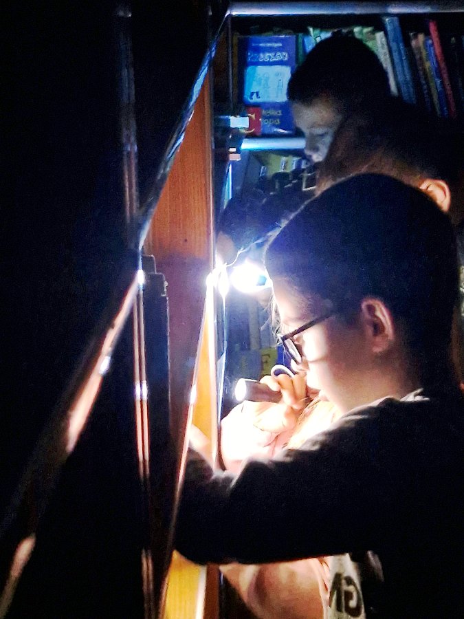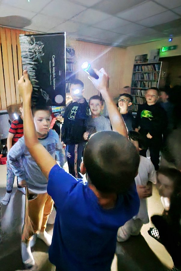 Podczas wieczoru uczestnicy mieli okazję odkrywać bibliotekę w zupełnie nowym świetle - dosłownie i w przenośni. Program rozpoczął się od czytania wiersza Ewy Szelburg-Zarembiny "Ciemnego pokoju nie trzeba się bać", co pomogło stworzyć przyjazną atmosferę i oswoić dzieci z ciemnością.