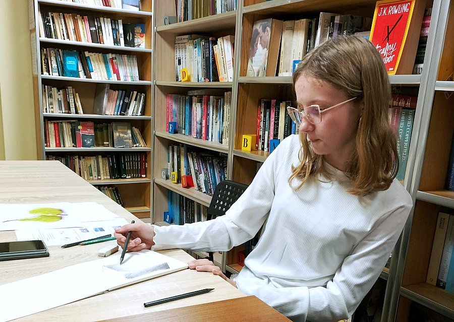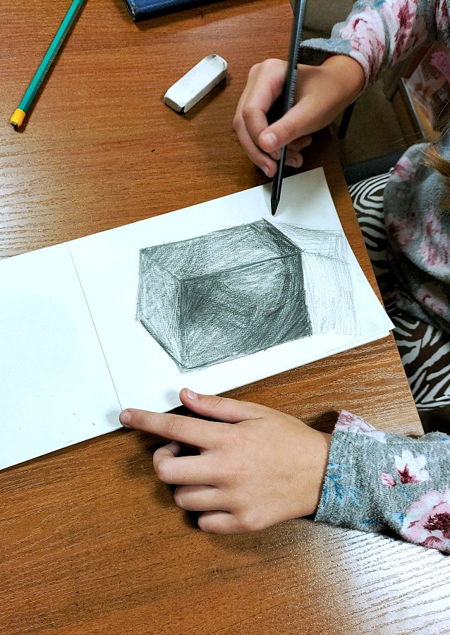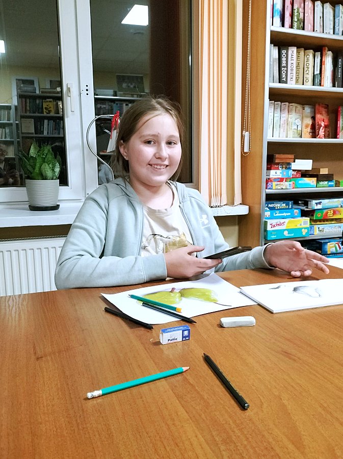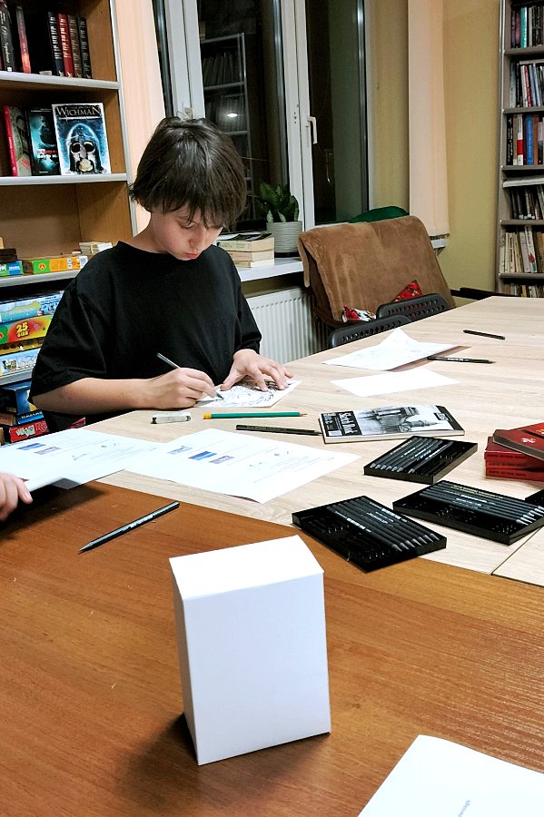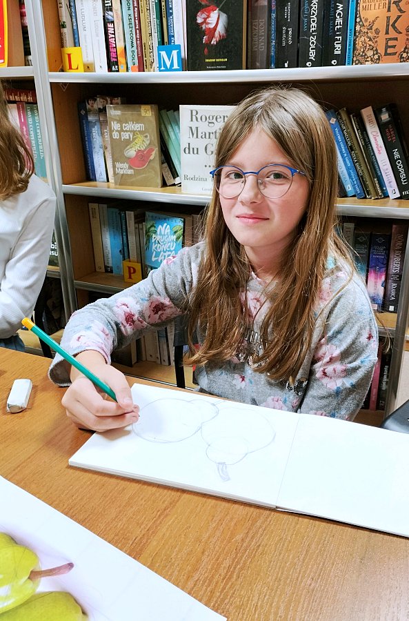 Na ostatnich zajęciach plastycznych w Gminnym Ośrodku Kultury w Nowych Piekutach młodzi artyści doskonalili swoje umiejętności rysunkowe. Dzieci pracowały nad odwzorowaniem gruszek oraz prostopadłościanów, ćwicząc technikę przedstawiania różnych kształtów i faktur.