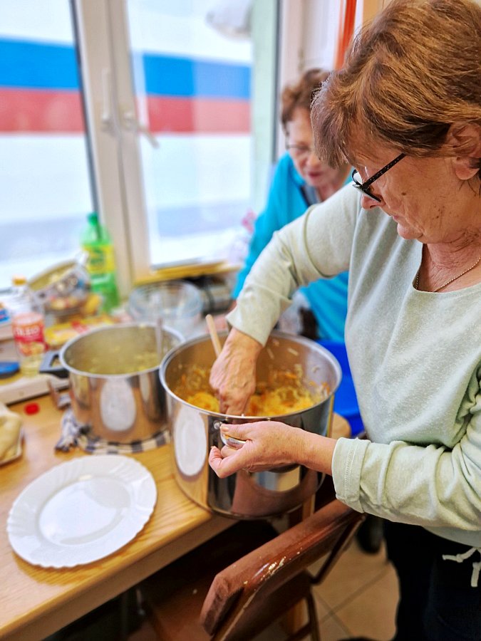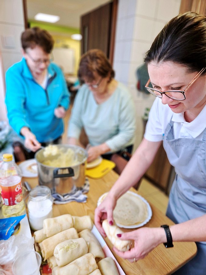 Spotkanie w nowopiekuckim ośrodku kultury to nie tylko nauka gotowania - seniorzy mieli okazję wymienić się doświadczeniami kulinarnymi i poznać nowe spojrzenie na przyrządzanie znanych dań. Wspólne gotowanie stało się pretekstem do licznych rozmów, nie tylko o kuchni.
