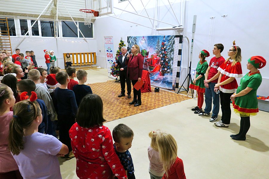 VIII Mikołajki Gminne zamieniły salę gimnastyczną Zespołu Szkolno-Przedszkolnego w świąteczną krainę. Głównym gościem był Święty Mikołaj, który przybył z workiem pełnym prezentów dla najmłodszych mieszkańców gminy.