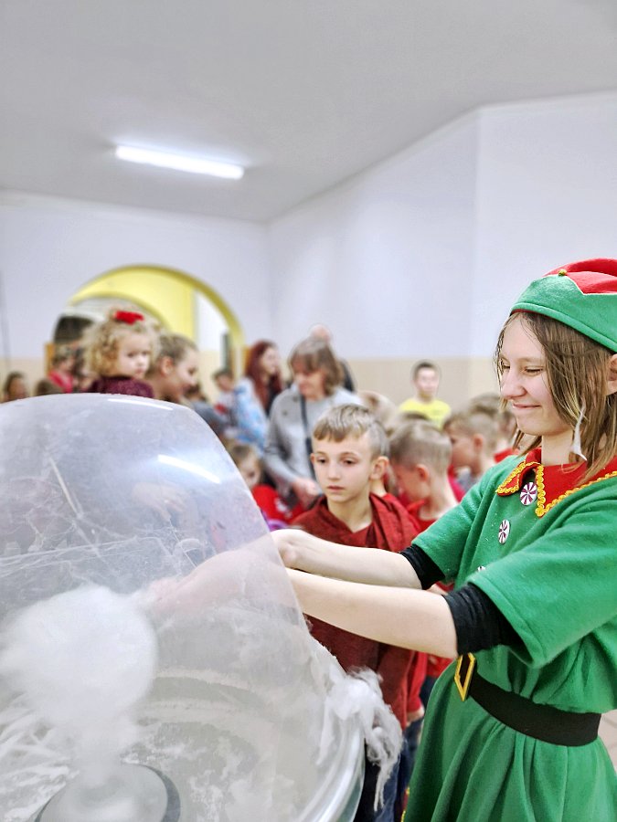 W programie wydarzenia znalazły się gry, konkursy i zabawy prowadzone przez elfy, które wprowadzały dzieci w magiczną atmosferę zbliżających się świąt. W spotkaniu uczestniczył wójt gminy Nowe Piekuty Marek Kaczyński.