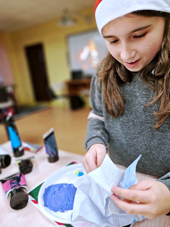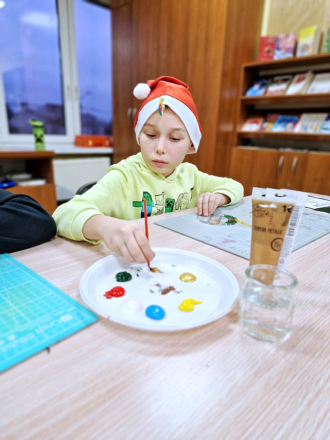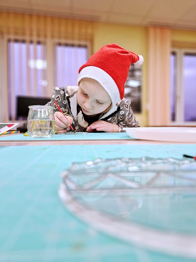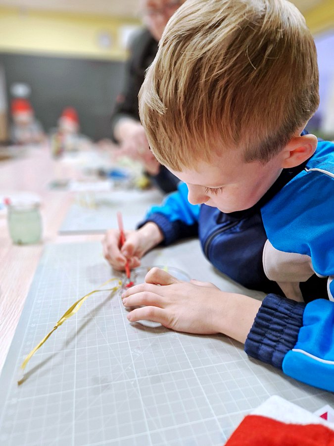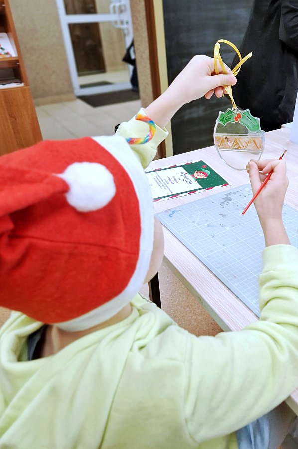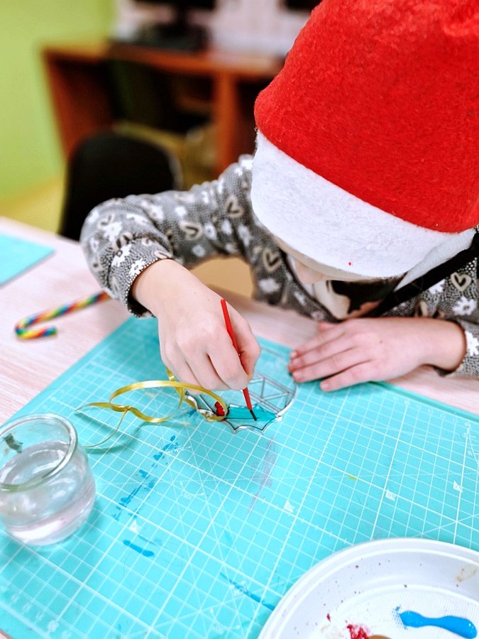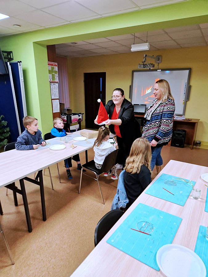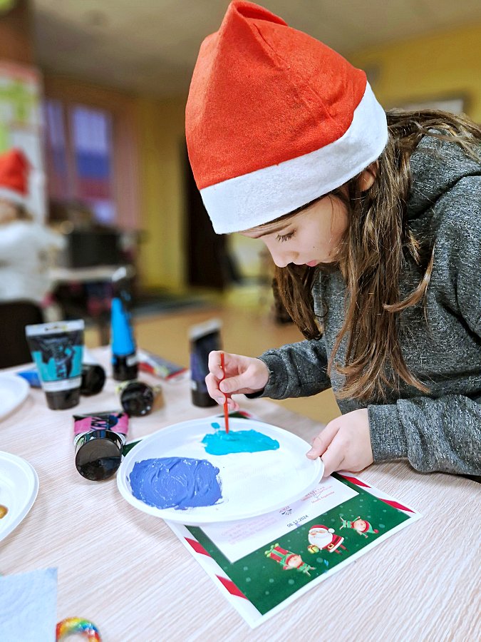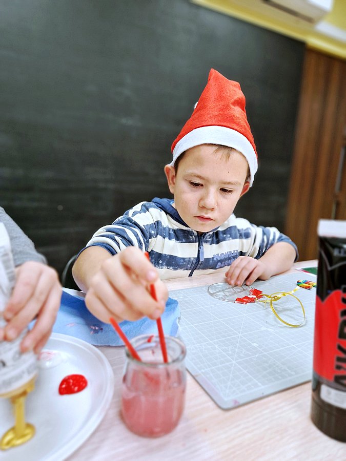 Główną częścią warsztatów były zajęcia z malowania na szkle. Dzieci poznały tajniki tej techniki artystycznej i wykorzystały zdobytą wiedzę do stworzenia własnych, niepowtarzalnych bombek choinkowych. Każda z ozdób zyskała indywidualny charakter, odzwierciedlając wyobraźnię i artystyczne zdolności młodych twórców.