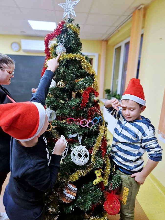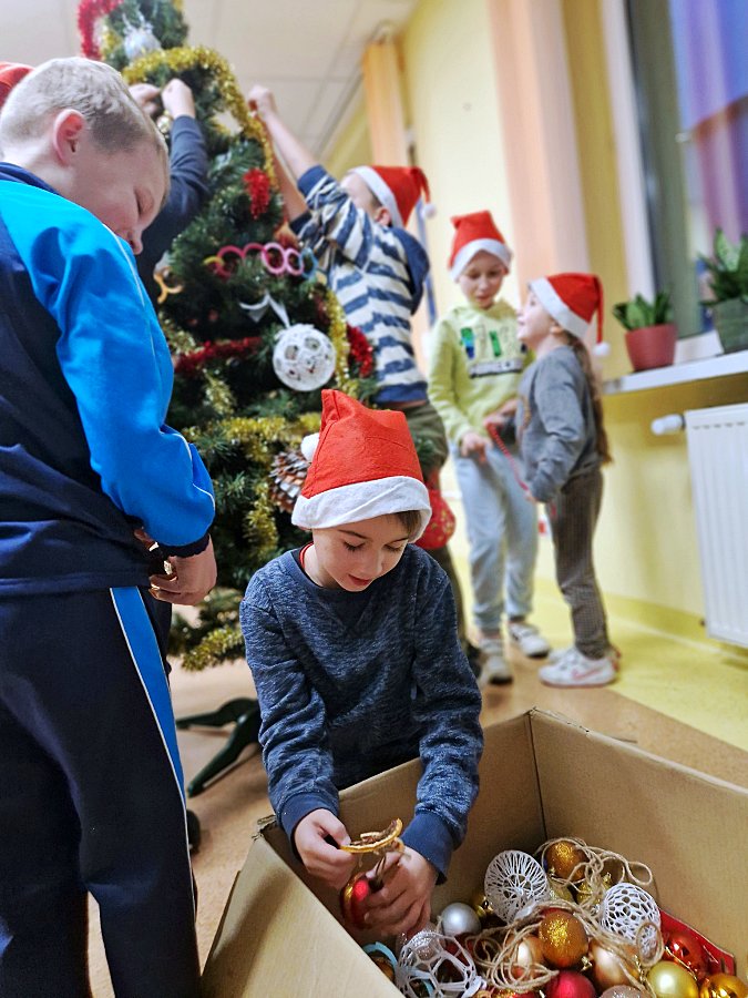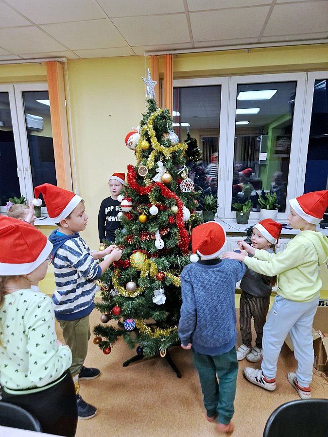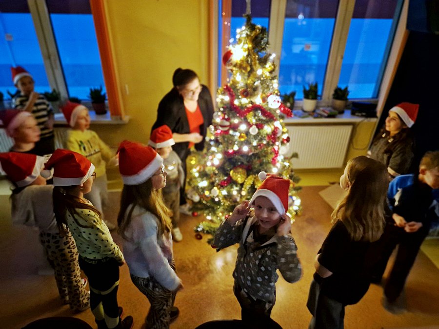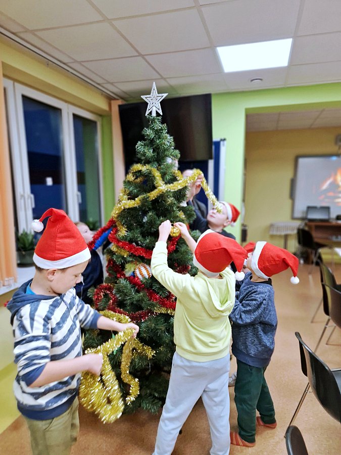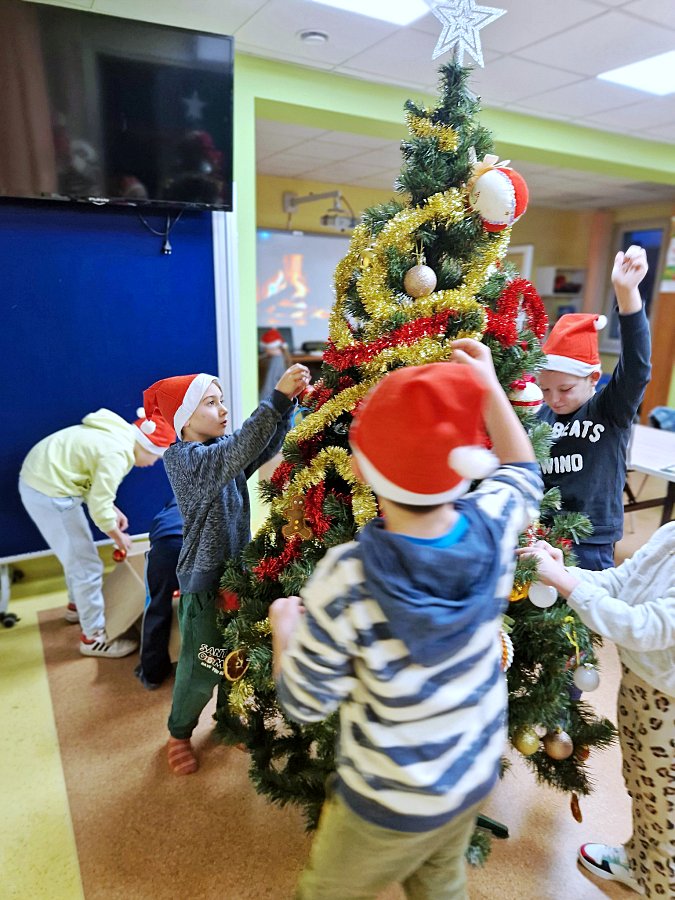 Świąteczna atmosfera osiągnęła swój szczyt podczas wspólnego dekorowania choinki. Przy dźwiękach tradycyjnych kolęd, dzieci zawieszały na drzewku własnoręcznie wykonane ozdoby oraz inne świąteczne dekoracje. Kulminacyjnym momentem było uroczyste zaświecenie choinki, które wywołało zachwyt wśród wszystkich uczestników.