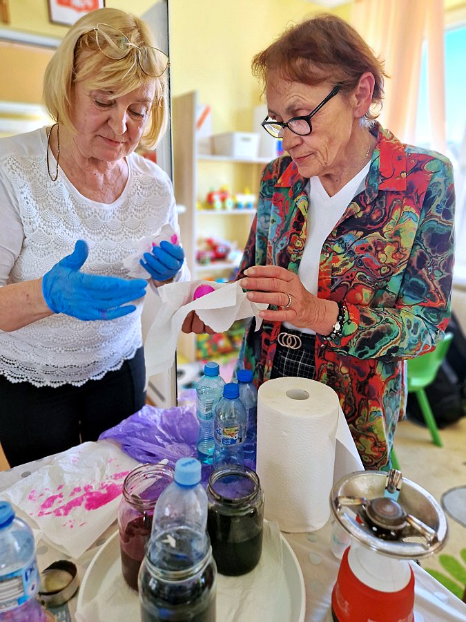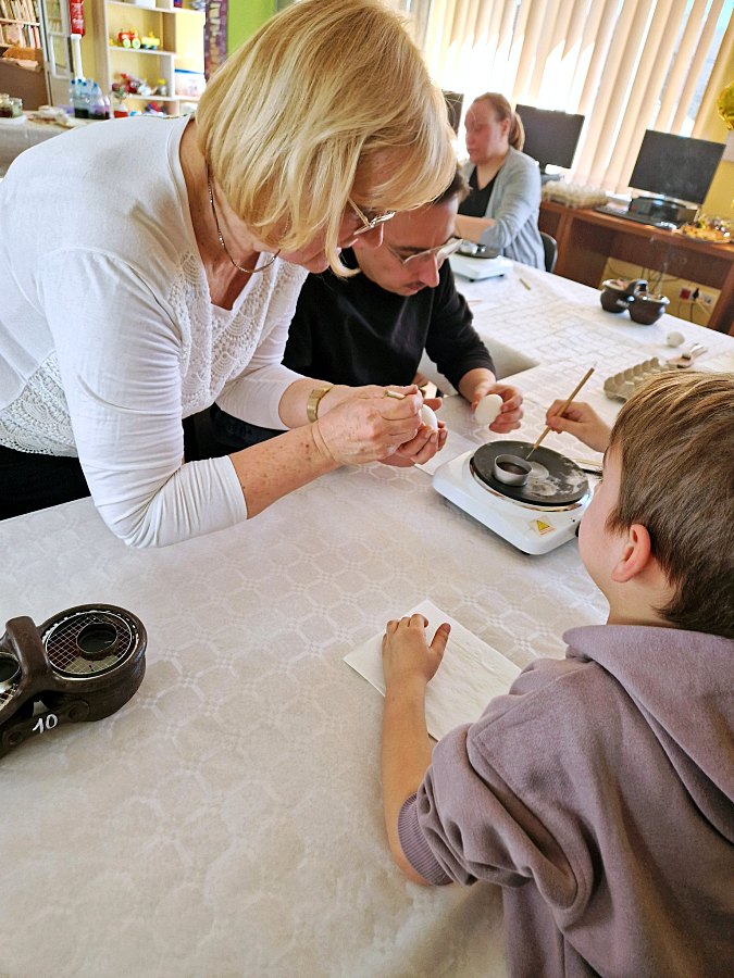 Warsztaty poprowadziły Genowefa Sztukowska-Skardzińska oraz Małgorzata Rakus ze Stowarzyszenia Miłośników Lipskiej Pisanki i Tradycji. Dzięki ich wiedzy i doświadczeniu, uczestnicy z gminy Nowe Piekuty mogli nauczyć się tradycyjnych technik zdobienia wielkanocnych pisanek.
