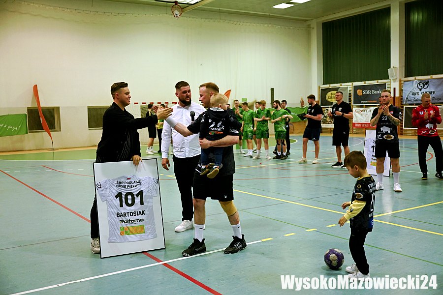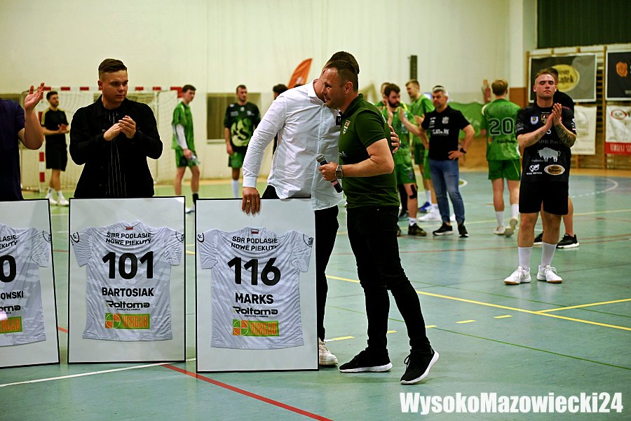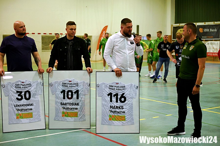 W sobotę 3 maja, w hali sportowej ZSCKR w Rudce, drużyna SBR Podlasie Nowe Piekuty rozegrała swój ostatni mecz w bieżącym sezonie 1. Ligi Piłki Ręcznej. Spotkanie z AZS UMCS Lublin miało szczególny charakter - nie tylko sportowy, ale przede wszystkim emocjonalny, ponieważ kibice żegnali trzy osoby, które odcisnęły ogromne piętno na historii klubu z powiatu wysokomazowieckiego.