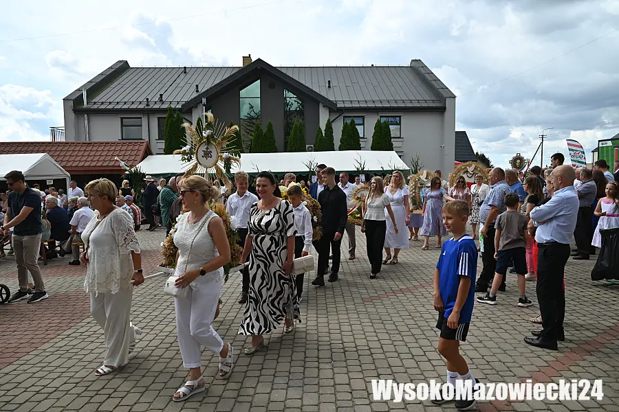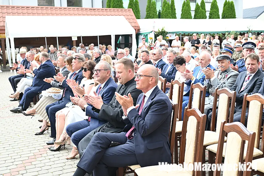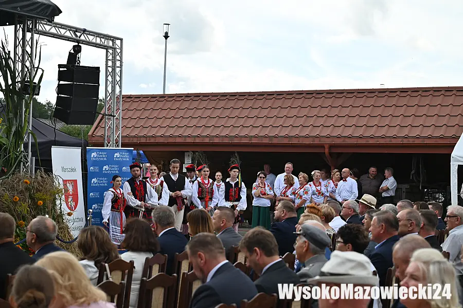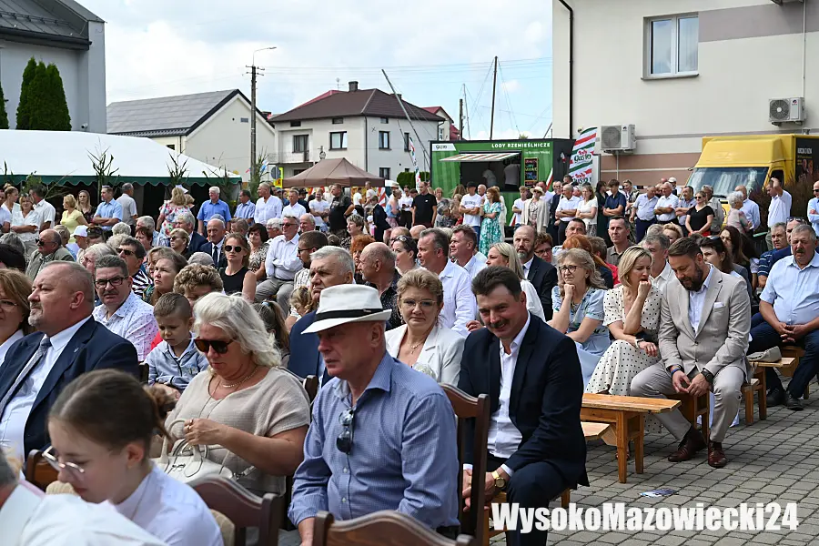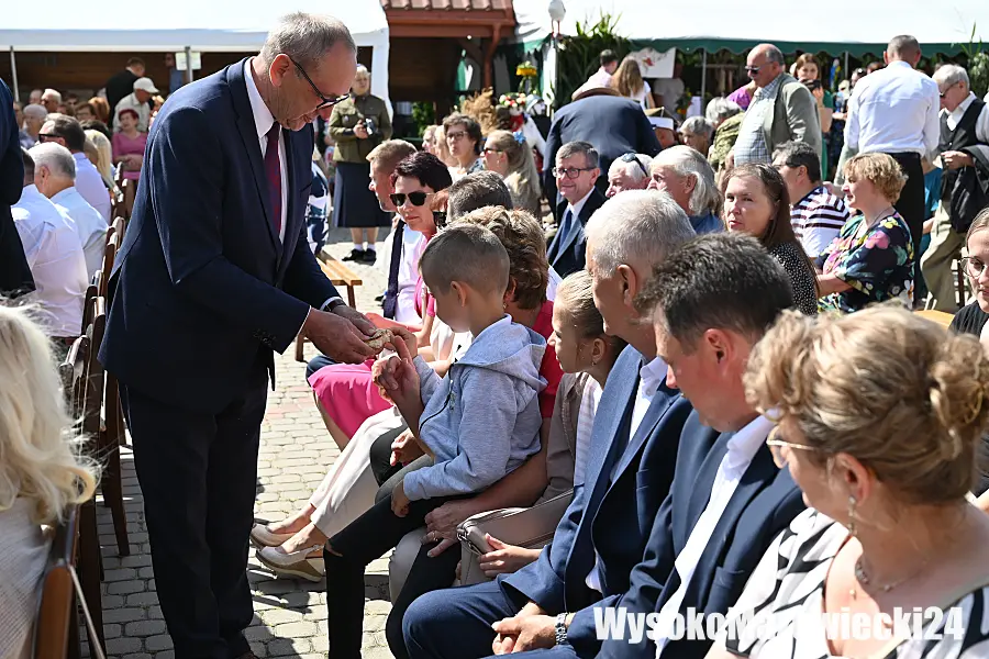 Oficjalna część uroczystości rozpoczęła się na placu głównym od powitania gości. Odczytano list od nieobecnego wójta gminy Marka Kaczyńskiego, który jest na zwolnieniu po operacji biodra. Głównym momentem był tradycyjny obrzęd dzielenia się chlebem. Po poświęceniu bochna przez proboszcza ks. Roberta Czeladko, starostowie dożynek przekazali go na ręce zastępcy wójta Ewy Pruszyńskiej. Następnie chlebem podzielono się ze wszystkimi uczestnikami święta, co symbolizowało jedność i szacunek dla owoców ziemi.