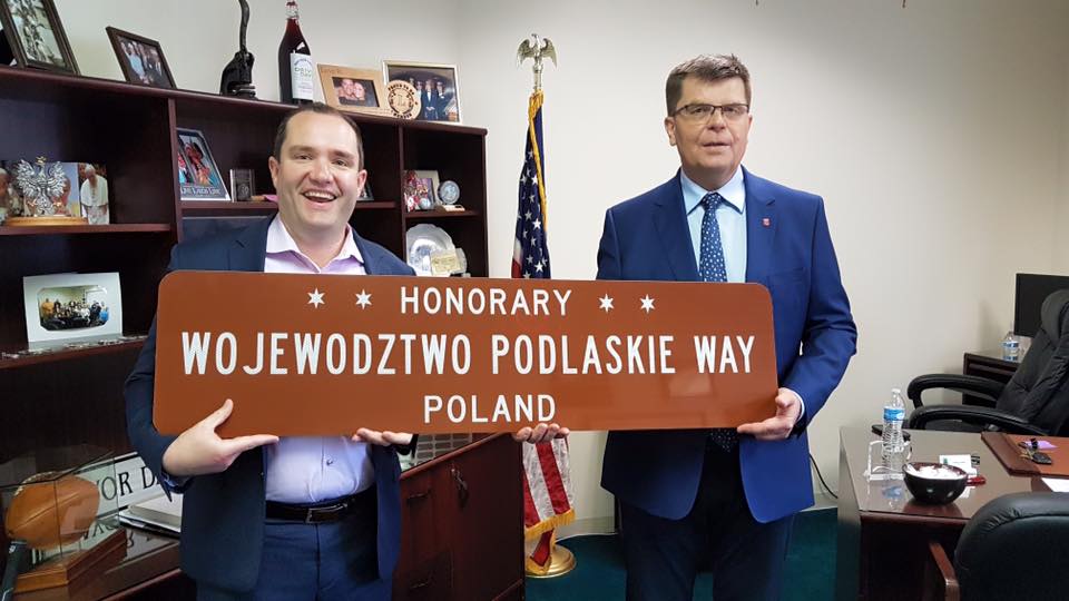 - Dowiedziałem się, że ten wielokolorowy żubr – logo waszego regionu – reprezentuje waszą różnorodność. River Grove jest pod tym względem bardzo podobne. Mieszkają tu przedstawiciele wielu różnych narodowości – również Polacy. Jestem dumny z tego, że wybrali River Grove - w swoim przemówieniu powiedział burmistrz River Grove, David Guerin. - Dzisiejsza uroczystość nadania honorowej nazwy Województwo Podlaskie Way, pierwszej honorowej nazwy ulicy w River Grove, podkreśla związki naszej miejscowości z Polską, z województwem Podlaskim”.