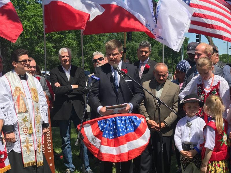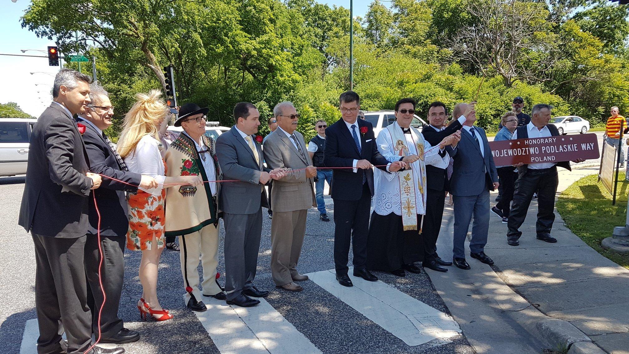 W uroczystości wzięli również udział burmistrzowie sąsiednich dzielnic Chicago, Przewodniczący Związku Narodowego Polskiego Frank Spula, Wicekonsul RP w Chicago Piotr Semeniuk i licznie zgromadzona Polonia.
