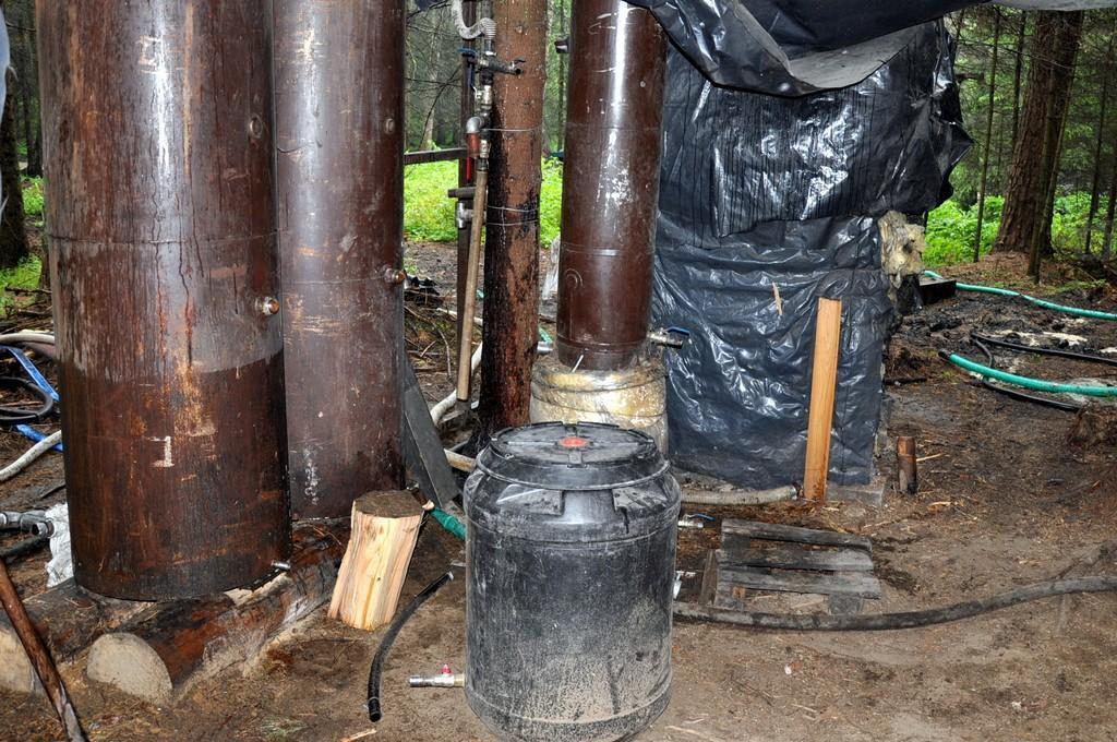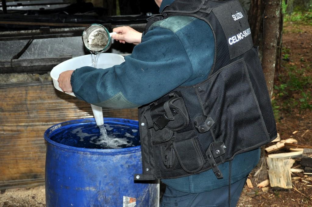 Na miejscu funkcjonariusze zabezpieczyli sprzęt służący do produkcji bimbru – dwa piece ze stalowymi kominami i zbiornikami zacierowymi, kolumny i chłodnice, piec do podgrzewania wody oraz kadzie na zacier o łącznej pojemności 2,5 tys. litrów. W ręce mundurowych wpadło także 350 litrów świeżo wyprodukowanego alkoholu o mocy ponad 50%.