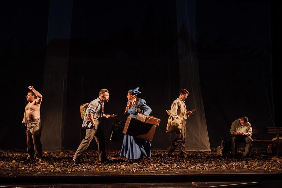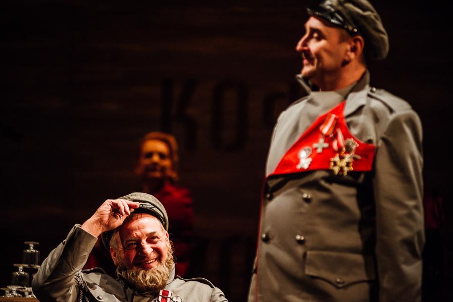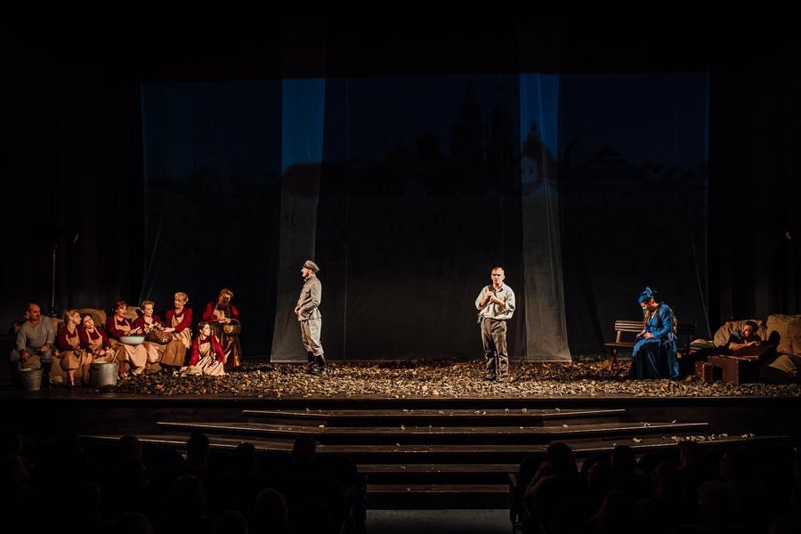 - „Gałązka rozmarynu” to spektakl, który jest dla mnie niezwykle ważny. Było to pierwsze przedstawienie, w którym zagrałem w Teatrze Dramatycznym w Białymstoku. 30 lat temu Pan Jerzy Hutek i Pan Andrzej Jakimiec zaprosili mnie do współpracy, a 4 lutego 1989 roku odbyła się premiera. Podchodzę do tej sztuki bardzo emocjonalnie i ucieszyłem się, kiedy okazało się, że przedstawienie będzie u nas ponownie realizowane. Z dzisiejszej obsady w pierwszym przedstawieniu występowali również Franciszek Utko i Krzysiek Ławniczak. W trakcie dzisiejszego, premierowego wieczoru poczułem, że dodany chór i muzyka sprawiają, że bierzemy udział w wielkim widowisku – powiedział Sławomir Popławski, odtwórca roli Zadory.