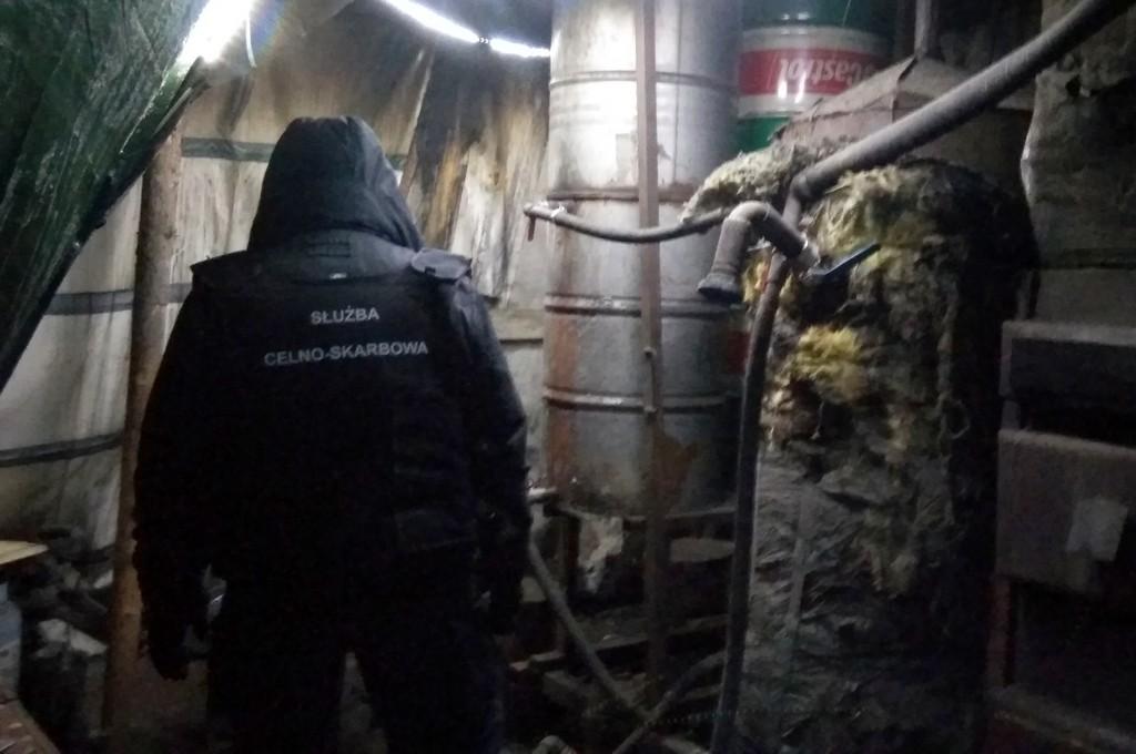 Funkcjonariusze z Podlaskiego Urzędu Celno-Skarbowego w Białymstoku ustalili, że w kompleksie leśnym w okolicach Krynek funkcjonuje bimbrownia, w której produkowany jest nielegalny alkohol. Mundurowi wkroczyli na jej teren zaskakując nadzorującego produkcję alkoholu 39-letniego mężczyznę.
