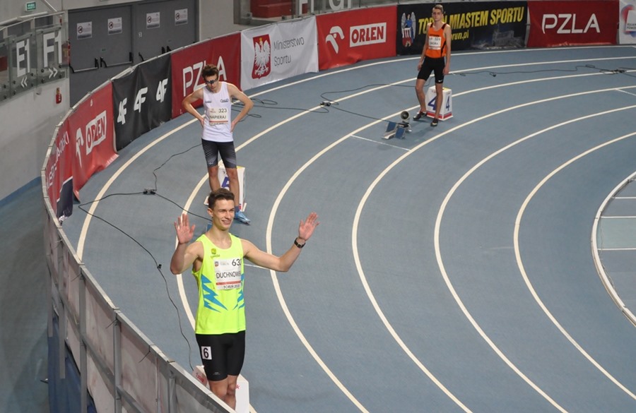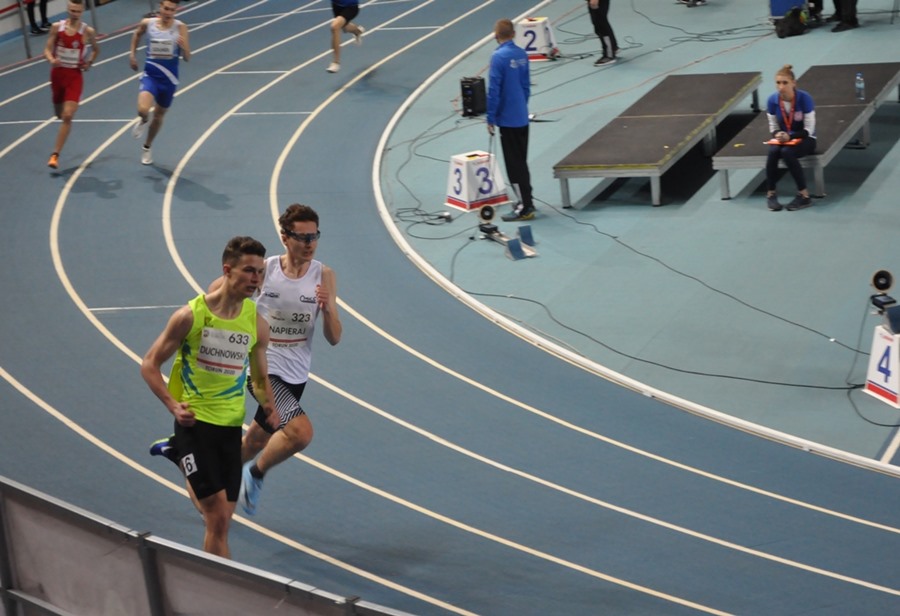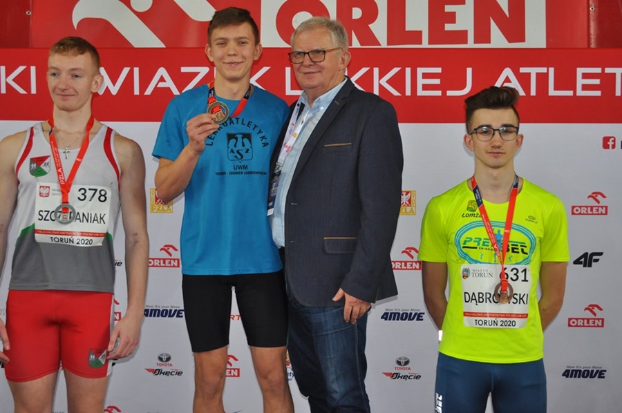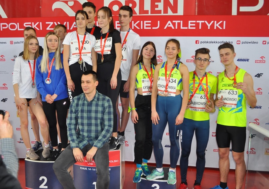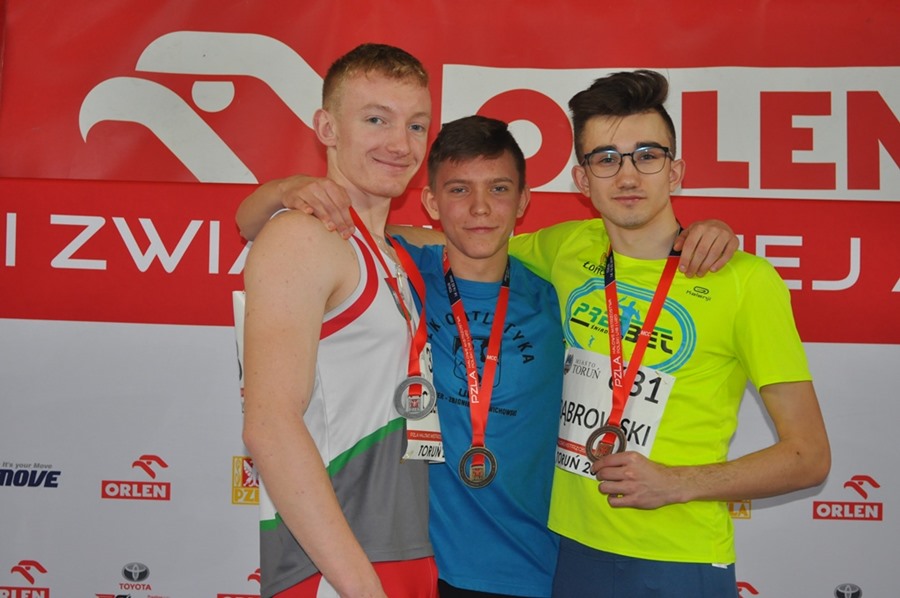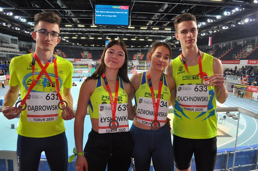 Najlepiej zaprezentował się Piotr Dąbrowski, który wywalczył brązowy medal a w tej samej konkurencji Igor Duchnowski uzyskał rekord życiowy 35,71 co dało mu 7-my czas eliminacji i finał B( do finału A zabrakło 0,1 sek….).Jednak ze względu na dobro sztafety Igor w finale B już nie pobiegł. Świetne wyniki chłopców na 300 metrów pomimo braku kontuzjowanej medalistki Mistrzostw Polski-Martyny Krawczyńskiej pozwalały mieć nadzieję na medal w sztafecie 4x400 Mix(2 dziewczęta i 2 chłopców).Tak też się stało zawodnicy nie zawiedli pokładanych w nich nadziei i zdobyli również brązowy medal. Wszyscy zawodnicy z wyjątkiem Igora są uczniami Liceum Mistrzostwa Sportowego w Łomży