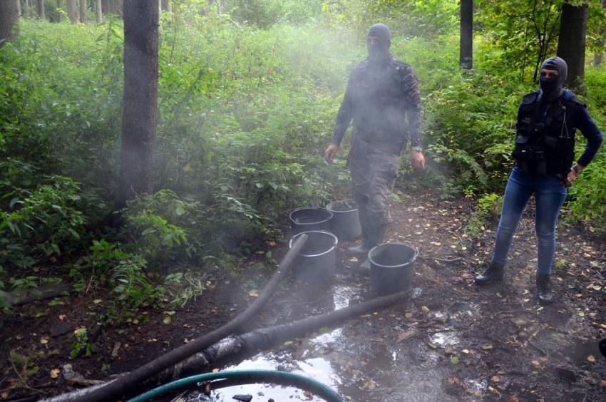 Funkcjonariusze Krajowej Administracji Skarbowej (KAS) z Białegostoku zlikwidowali bimbrownię, która działała w lesie w okolicach Gródka (pow. białostocki). Podczas akcji zabezpieczono blisko 150 litrów nielegalnego alkoholu oraz aparaturę służącą do jego produkcji.