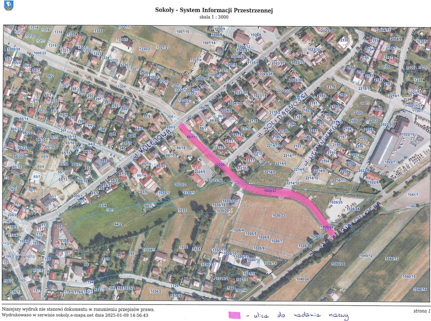 Mieszkańcy gminy Sokoły mogą zaproponować nazwę dla nowej ulicy w miejscowości. Nadanie nazwy jest niezbędne do ustalenia numeracji dla nowo powstających budynków mieszkalnych w tym rejonie.