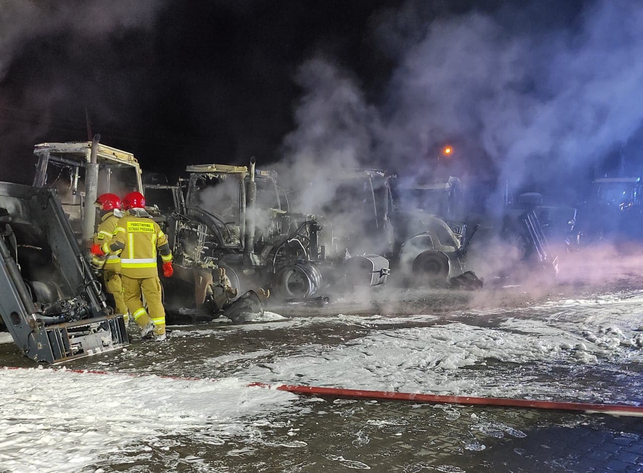 Sześć zastępów straży pożarnej walczyło z pożarem jaki wybuchł na terenie salonu maszyn rolniczych w Sokołach. Ogniem zajęło się 9 ciągników rolniczych.