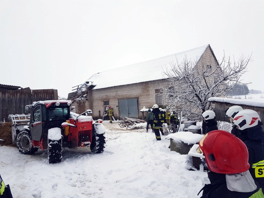 Dzisiaj (04.02) rano doszło do zawalenia się dachu na budynku gospodarczym w miejscowości Roszki Leśne, gmina Sokoły.