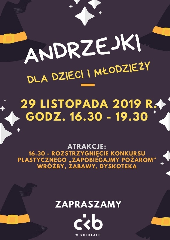 Centrum Kulturalno - Biblioteczne w Sokołach zaprasza na Andrzejki dla dzieci i młodzieży. Impreza odbędzie się w piątek, 29 listopada, w godzinach 16.30 - 19.30.