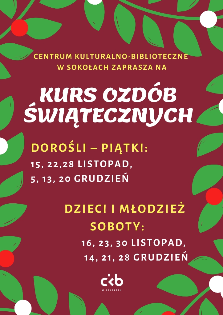 Centrum Kulturalno - Biblioteczne w Sokołach zaprasza na kurs ozdób świątecznych.