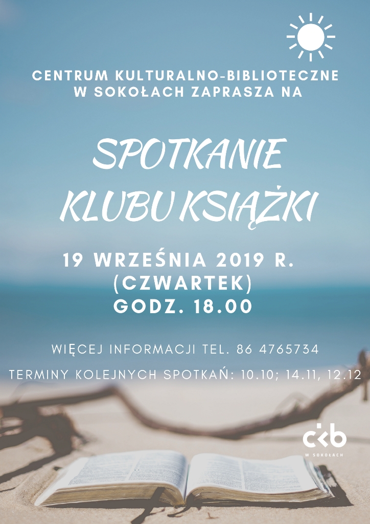 Centrum Kulturalno - Biblioteczne w Sokołach zaprasza na "Spotkanie Klubu Książki", które odbędzie się w najbliższy czwartek, 19 września. Początek o godzinie 18.00.