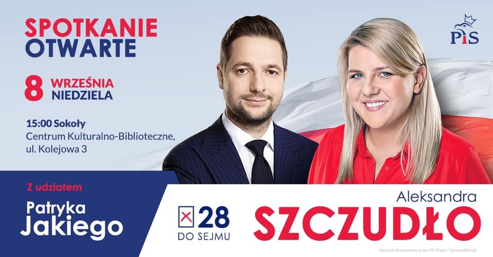 W najbliższą niedzielę (08.09) w Sokołach odbędzie się otwarte spotkanie z Europosłem Patrykiem Jakim.