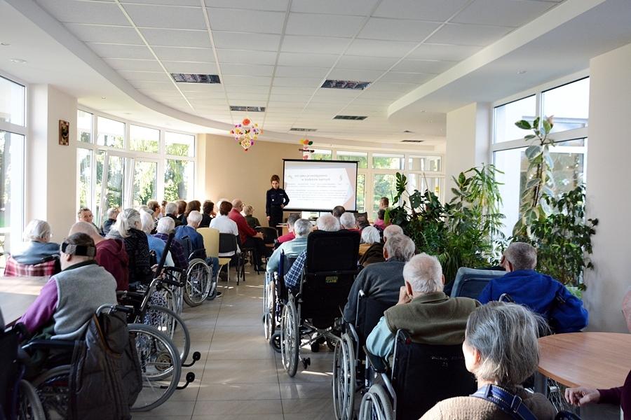 Wysokomazowieckie policjantki spotkały się z seniorami, aby porozmawiać o ich bezpieczeństwie. Podczas prelekcji mundurowe przestrzegały uczestników spotkania między innymi przed oszustami działającymi metodą na tzw. „wnuczka”.