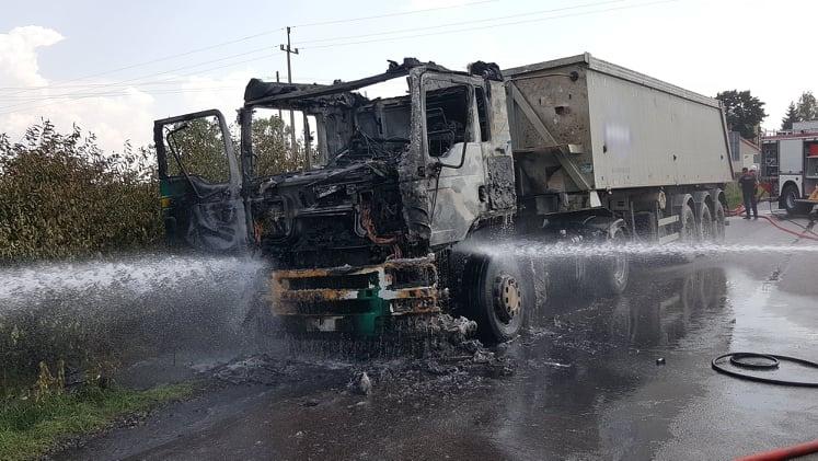 Całkowitemu spaleniu uległa ciężarówka. Do pożaru doszło wczoraj (31.07) po południu w okolicy Sokół.