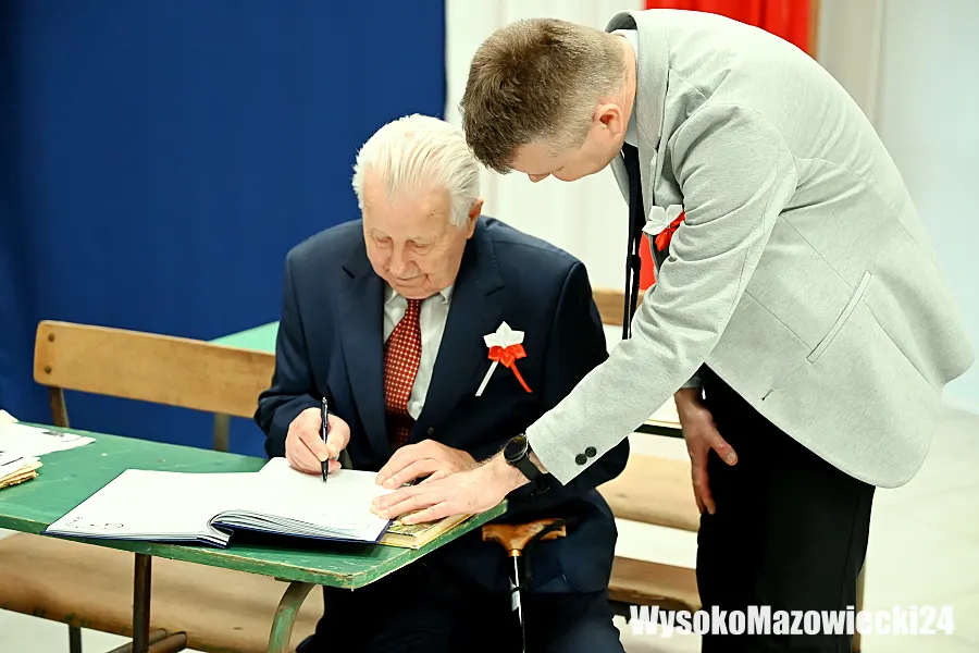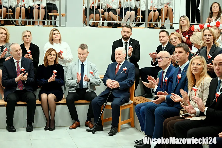 Po występach artystycznych nadszedł czas na przemówienia okolicznościowe. Ten wzruszający moment rozpoczął najstarszy żyjący absolwent szkoły. 95-letni Eugeniusz Dworakowski, który obecnie mieszka w Warszawie, specjalnie przybył na uroczystość, by podzielić się swoimi wspomnieniami z lat szkolnych.