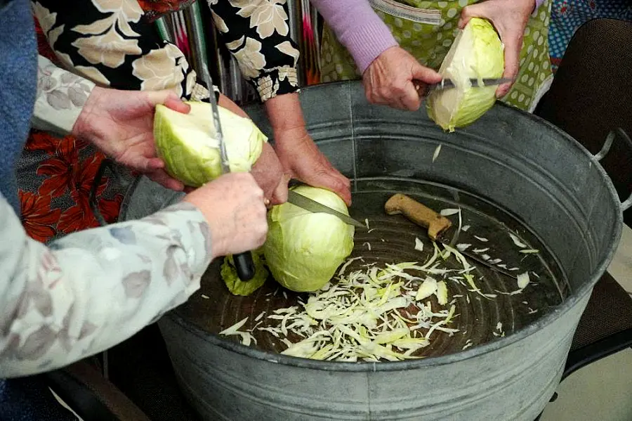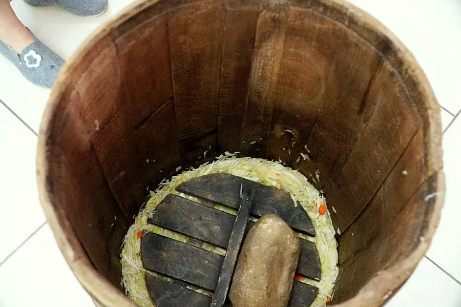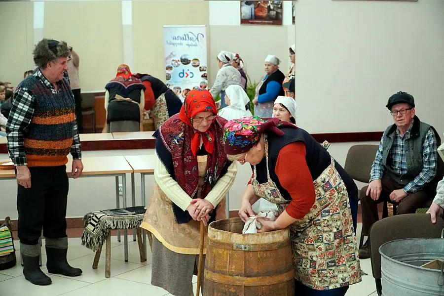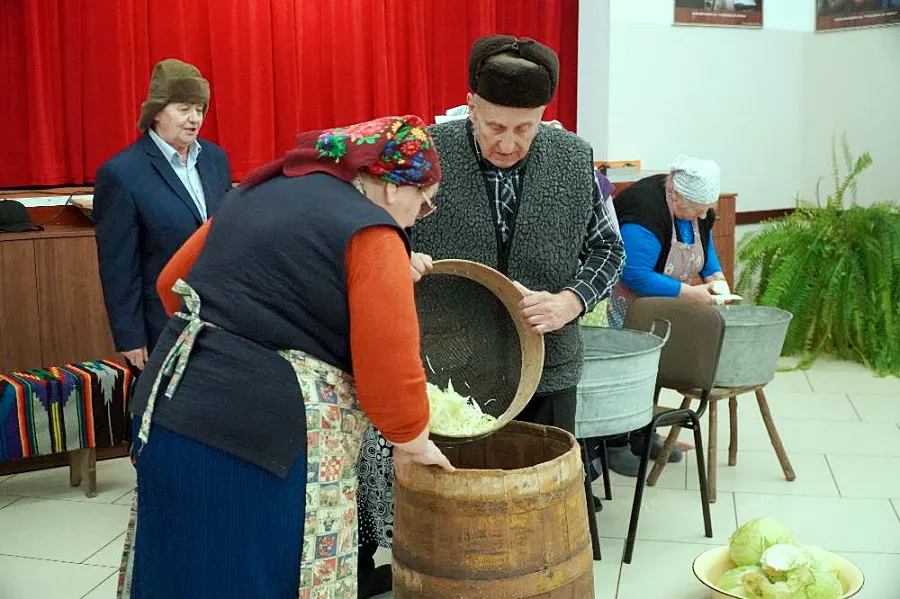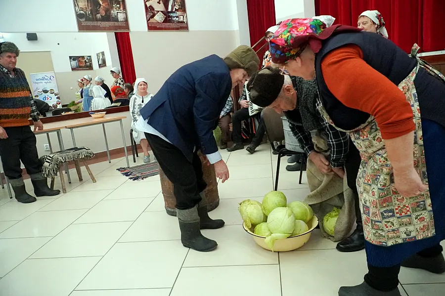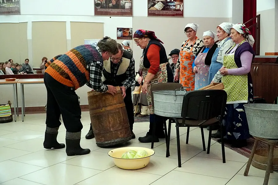 Zgromadzona publiczność mogła śledzić cały proces powstawania kiszonki – od momentu przygotowania drewnianej beczki, przez widowiskowe szatkowanie główek kapusty i dobieranie odpowiednich proporcji przypraw, aż po najważniejszy i najbardziej charakterystyczny etap, czyli ubijanie kapusty w beczce.