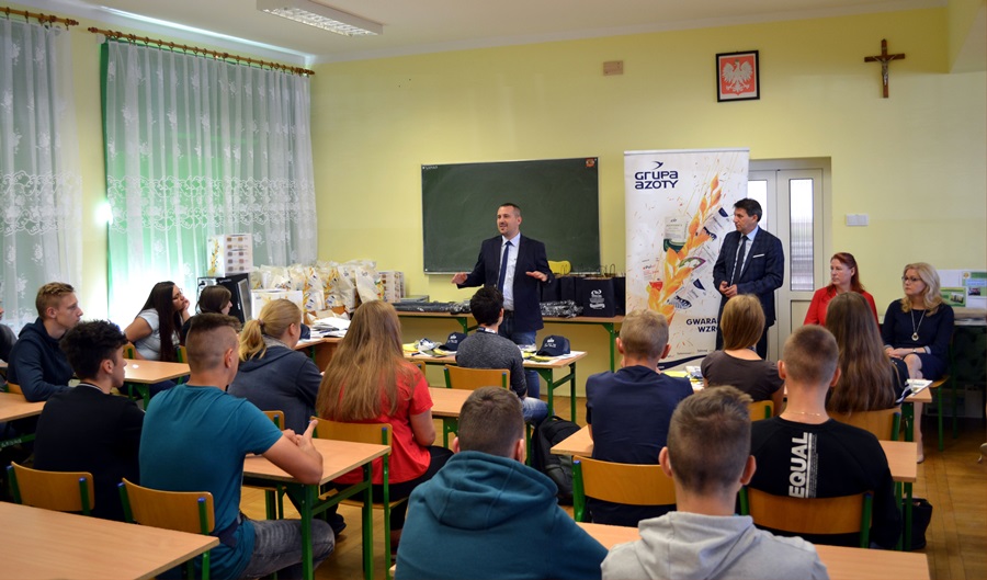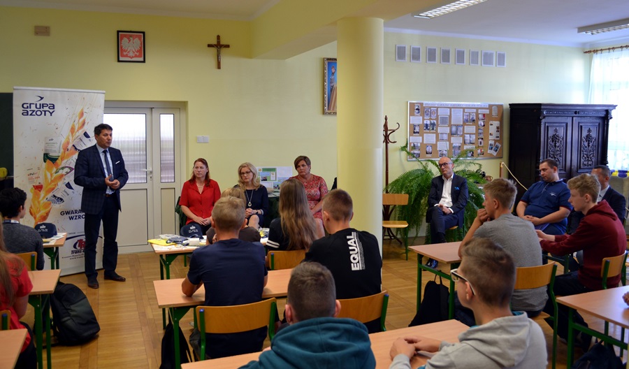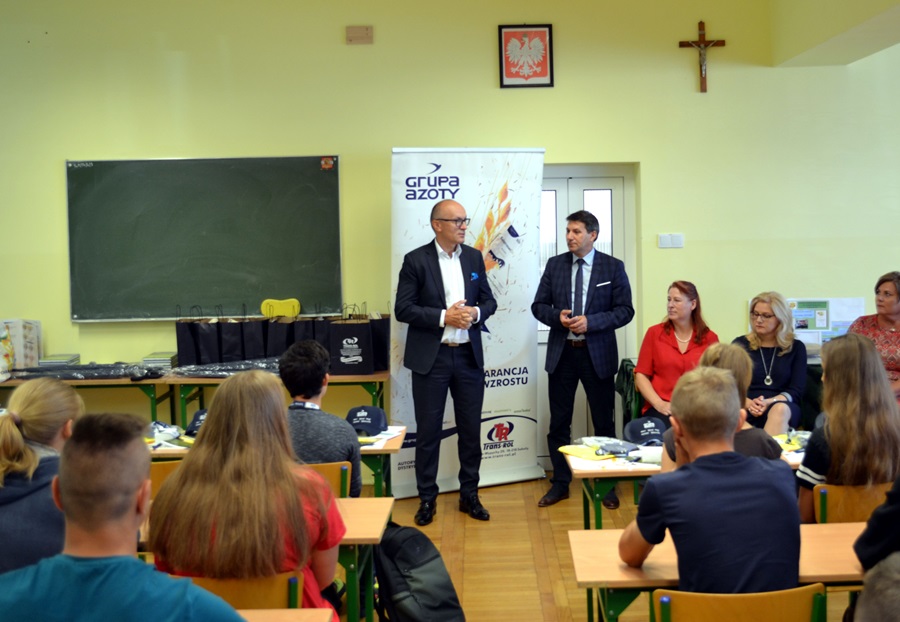 W piątek (06.09) właściciele firmy TRANS-ROL Grażyna i Andrzej Remisiewicz wspólnie z Grupą Azoty przekazali materiały edukacyjne 40 uczniom klas pierwszych szkoły średniej w Zespole Szkól Rolniczych w Krzyżewie.