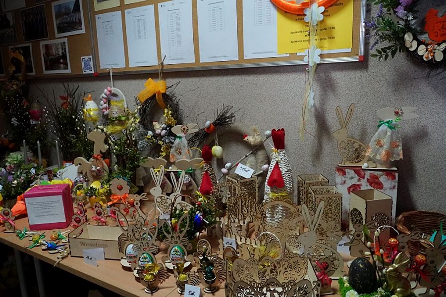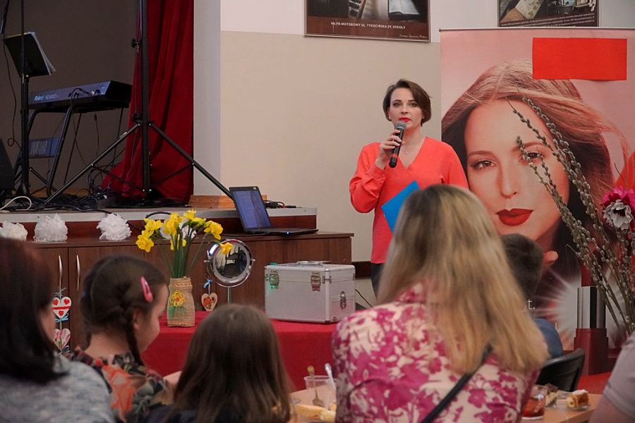 Ciekawym punktem programu były również warsztaty kosmetologiczne, prowadzone przez panią Monikę Malinowską, która opowiadała o prawidłowej pielęgnacji skóry twarzy i ciała. Dodatkowo, na spotkaniu została zorganizowana wystawa prac wielkanocnych uczestników Warsztatów Terapii Zajęciowej „Kolektyw” w Starych Raciborach.