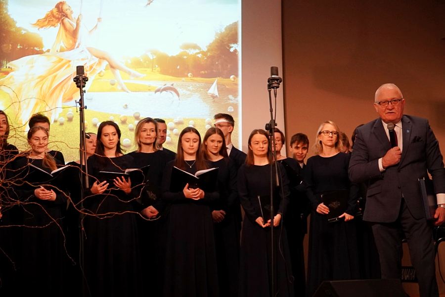 Józef Zajkowski, wójt gminy Sokoły, docenił talent i zaangażowanie artystów, wręczając zespołowi grawerton w podziękowaniu za uświetnienie Noworocznej Gali Agrobiznesu w Warszawie.