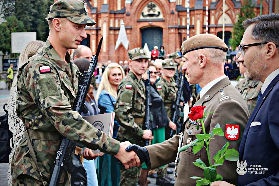 W Sokołach na Rynku Mickiewicza odbyła się ceremonia przysięgi wojskowej żołnierzy 1 Podlaskiej Brygady Obrony Terytorialnej. Była to największa tego typu uroczystość w bieżącym roku w regionie. Przysięga zakończyła tegoroczny projekt "Wakacje z WOT", w ramach którego terytorialną służbę rozpoczęło prawie 350 mieszkańców województwa podlaskiego.