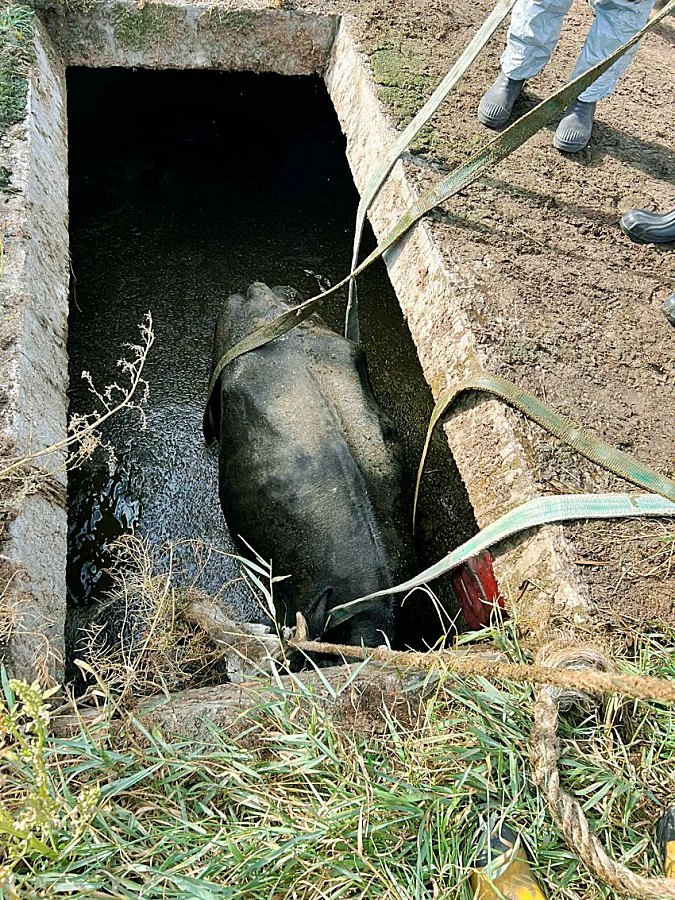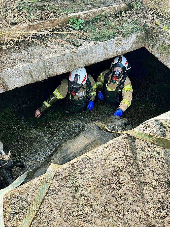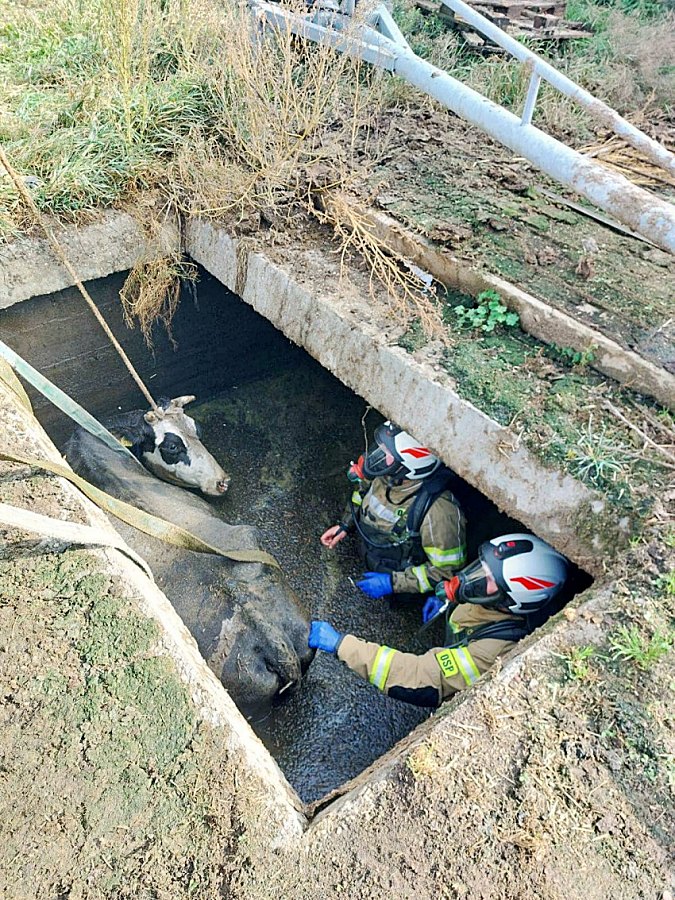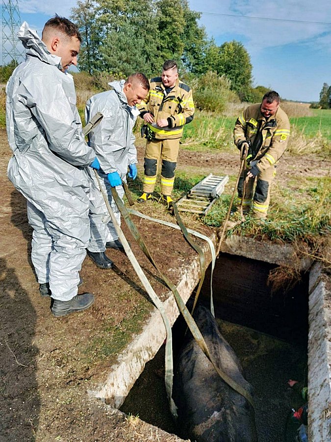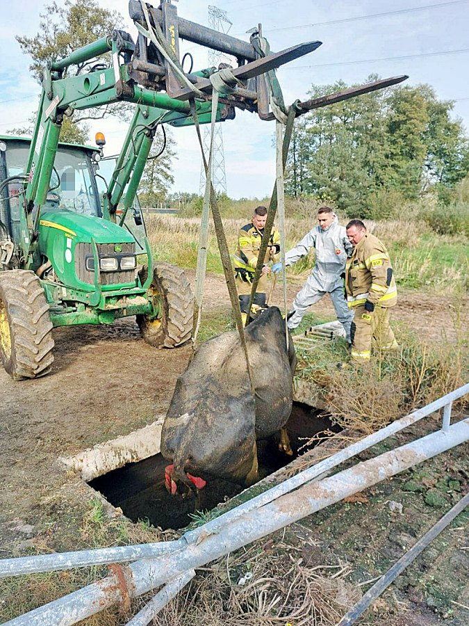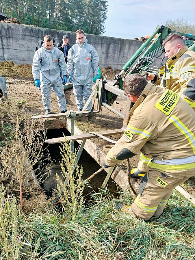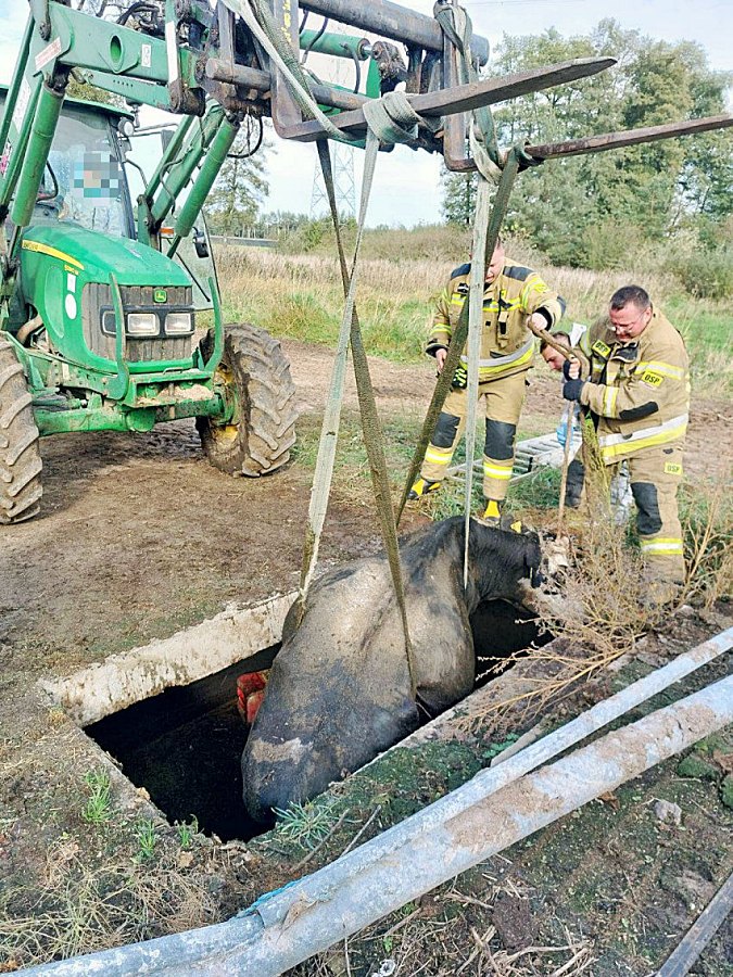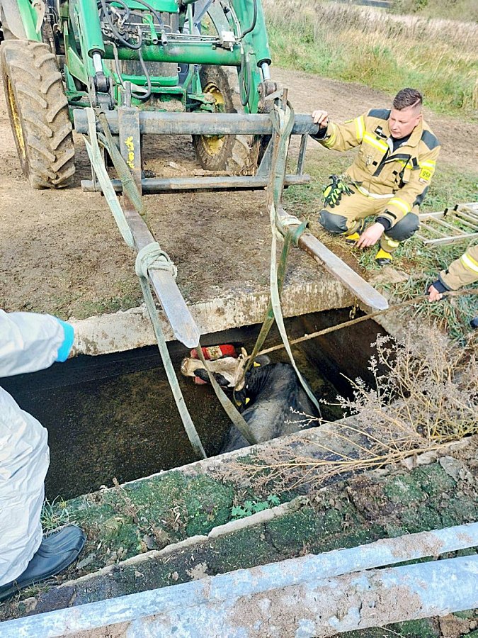 Jak informuje nasz portal mł. kpt. Cezary Zalewski Dowódca Jednostki Ratowniczo-Gaśniczej KP PSP w Wysokiem Mazowieckiem: - O godzinie 11:25 dyżurny stanowiska kierowania otrzymał zgłoszenie, że w miejscowości Dworaki – Staśki do zbiornika na gnojowicę wpadła krowa. Na miejsce zostały zadysponowane dwa zastępy strażaków: JRG Wysokie Mazowieckie i OSP KSRG Sokoły. Po przybyciu na miejsce zdarzenia zabezpieczono teren działań, po czym zgłoszenie zostało potwierdzone - w zbiorniku betonowym znajdowała się uwięziona krowa. Działania strażaków polegały m.in. na wypompowaniu części nieczystości przy użyciu maszyn rolniczych. Następnie ratownicy zeszli do zbiornika. Przy pomocy ciągnika rolniczego udało się wydobyć zwierzę na zewnątrz. Krowę przekazano właścicielowi i przybyłemu na miejsce lekarzowi weterynarii do dalszej oceny jej stanu.