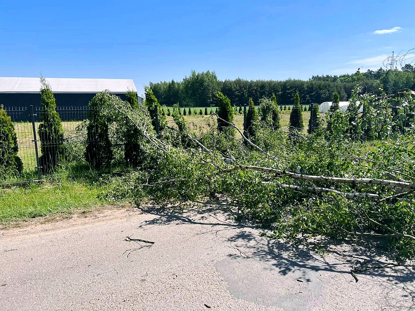 Do incydentu doszło w czwartek, kiedy drzewo, prawdopodobnie osłabione przez silne porywy wiatru, przewróciło się na jezdnię. Natychmiast po zgłoszeniu zdarzenia na miejsce wyruszyli strażacy z OSP KSRG Sokoły. Jeden zastęp szybko dotarł na miejsce, by zabezpieczyć teren i usunąć powalone drzewo.