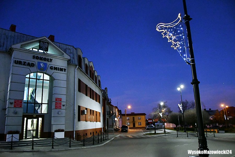Sokoły przygotowały świąteczną iluminację, która rozświetla ulice miejscowości w okresie Bożego Narodzenia. Na słupach energetycznych zamontowano dekoracyjne ozdoby w kształcie gwiazd, które tworzą świąteczną atmosferę.