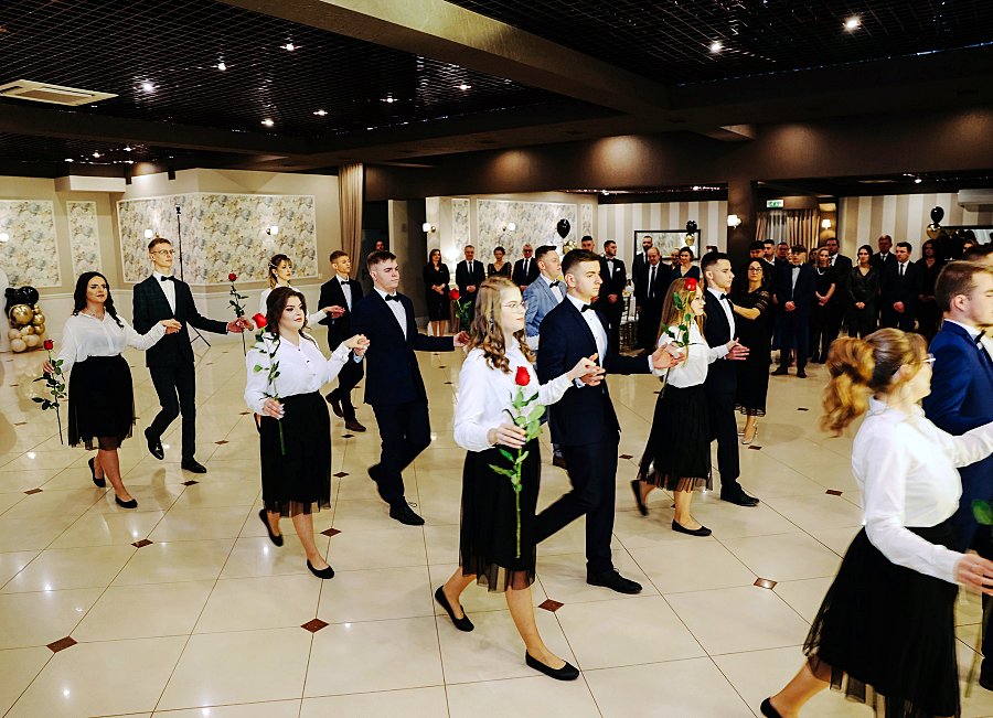 Rozpoczęcie balu uświetnił tradycyjny polonez, do którego młodzież przygotowywała się pod czujnym okiem Emilii Grocheckiej. Maturzyści z gracją wykonali ten dostojny taniec, demonstrując umiejętności nabyte podczas przygotowań. Występ spotkał się z entuzjastycznym przyjęciem zgromadzonych gości.