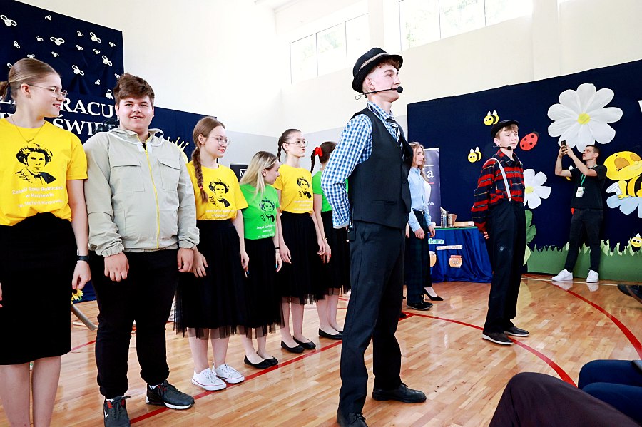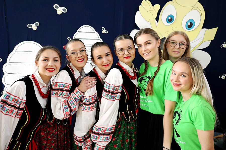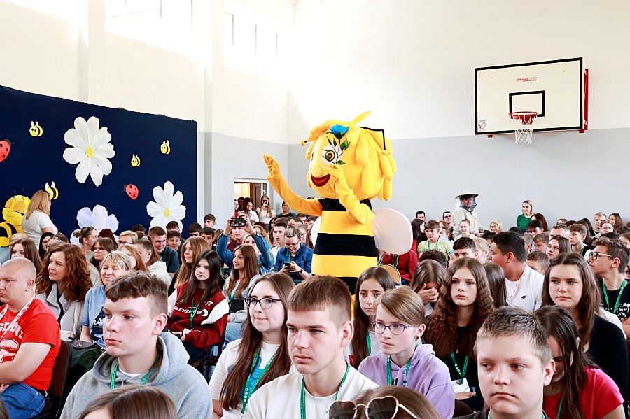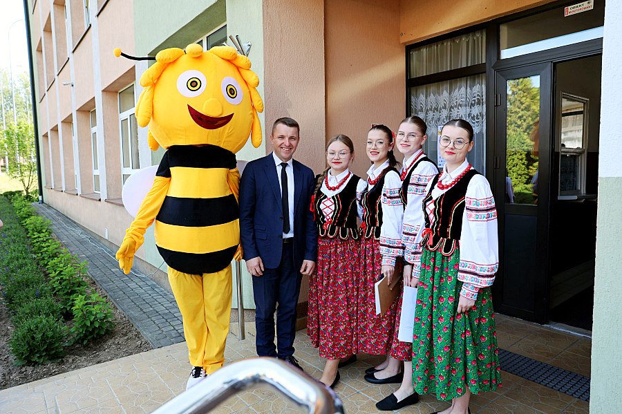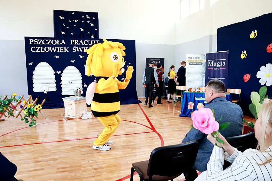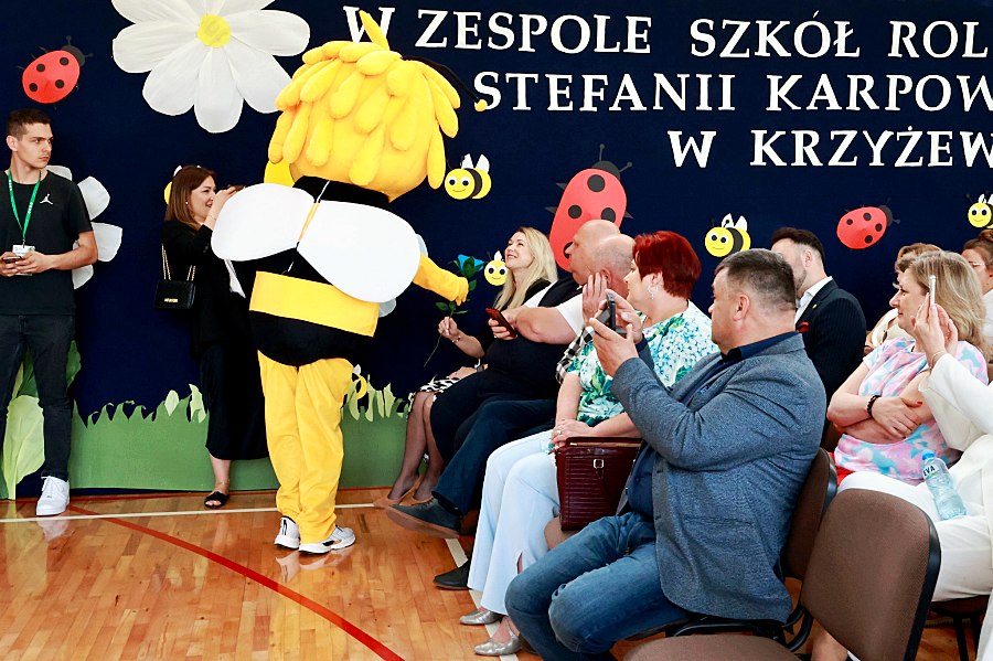 Dużą popularnością cieszyła się również szkolna maskotka w postaci pszczółki, z którą chętnie fotografowali się uczestnicy wydarzenia.