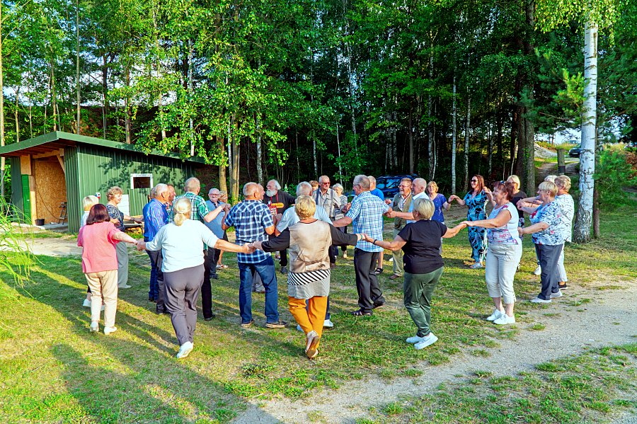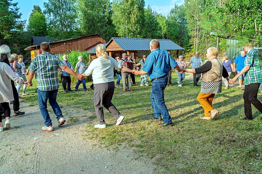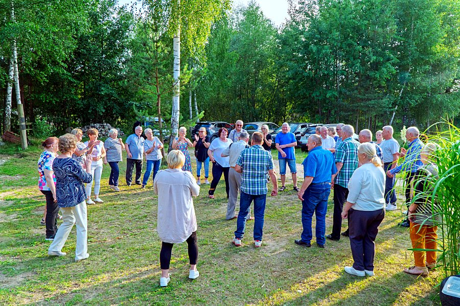Seniorzy mieli okazję do wspólnego śpiewania i tańczenia przy akompaniamencie akordeonu. Program spotkania obejmował również spacery po okolicy, podczas których uczestnicy mogli obserwować lokalną przyrodę. Dla miłośników przyrody była to dodatkowa atrakcja, pozwalająca na bliższy kontakt z lokalną florą i fauną. Uczestnicy mieli też okazję do rozmowy z gospodarzem - Panem Janem, który podzielił się swoją pasją do zielarstwa.