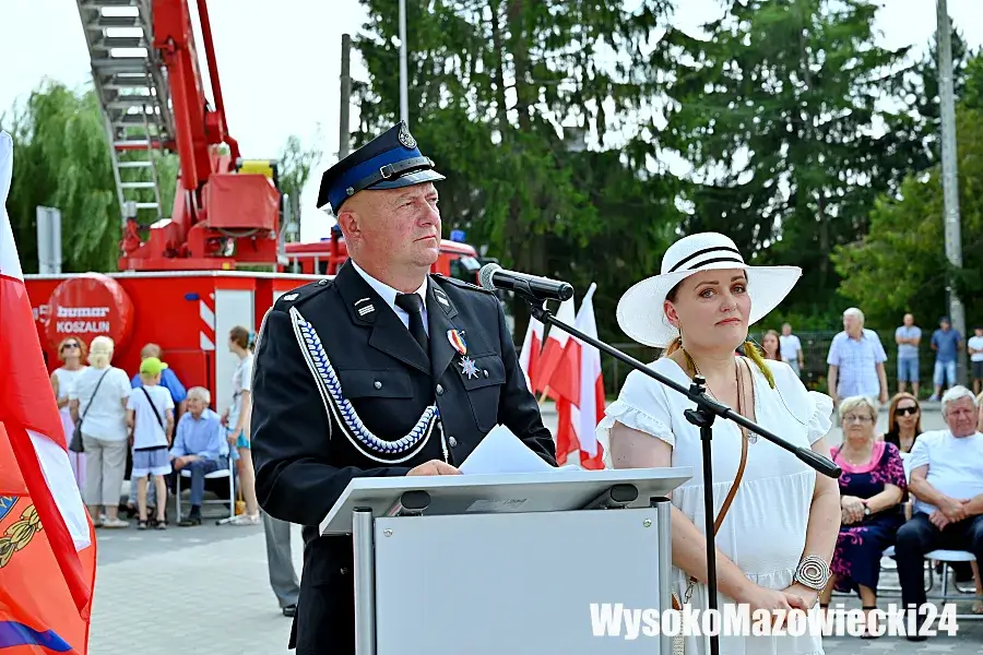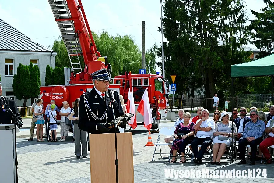 Prezes OSP Sokoły, druh Marcin Kruszewski, witając licznie przybyłych gości, podkreślił rangę wydarzenia. W swoim wystąpieniu nawiązał do bogatej historii jednostki, której korzenie sięgają głębiej niż oficjalna data założenia. Już w dokumencie nadającym Sokołom prawa miejskie z 1827 roku, zobowiązano władze do utrzymywania sprzętu gaśniczego. Oficjalnie Straż Ogniowa powstała w 1875 roku. Kruszewski wspomniał o mozolnej pracy historyków, Hanny Marii Kurzyny i Jacka Tomkiela, dzięki którym udało się odtworzyć dzieje jednostki.