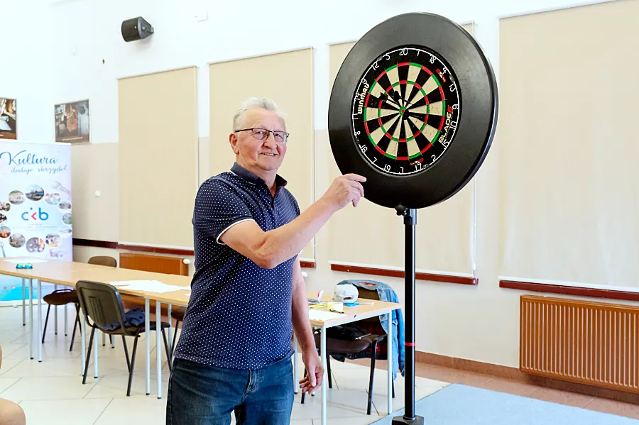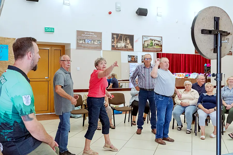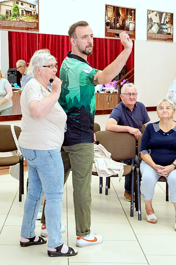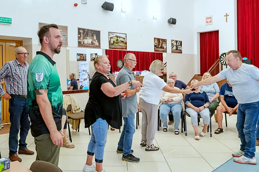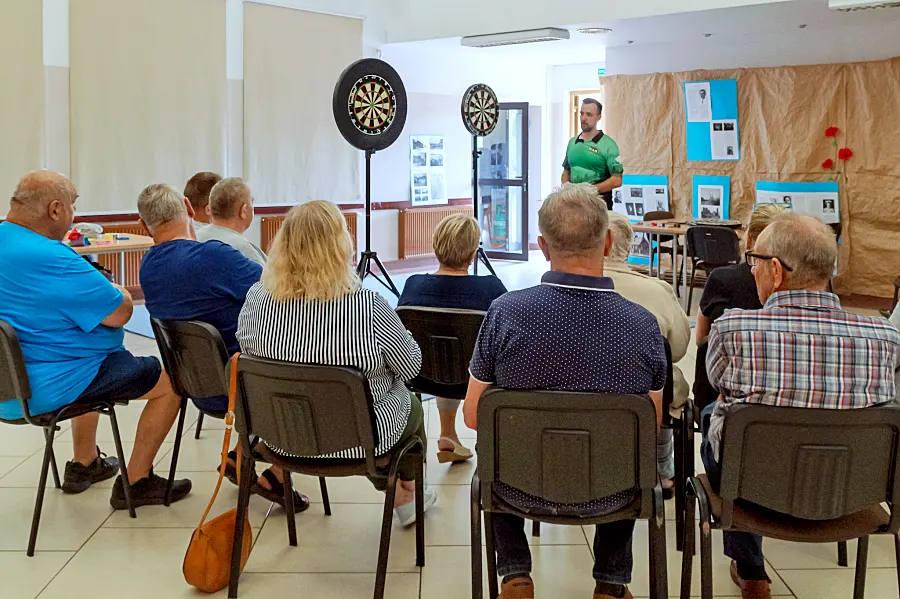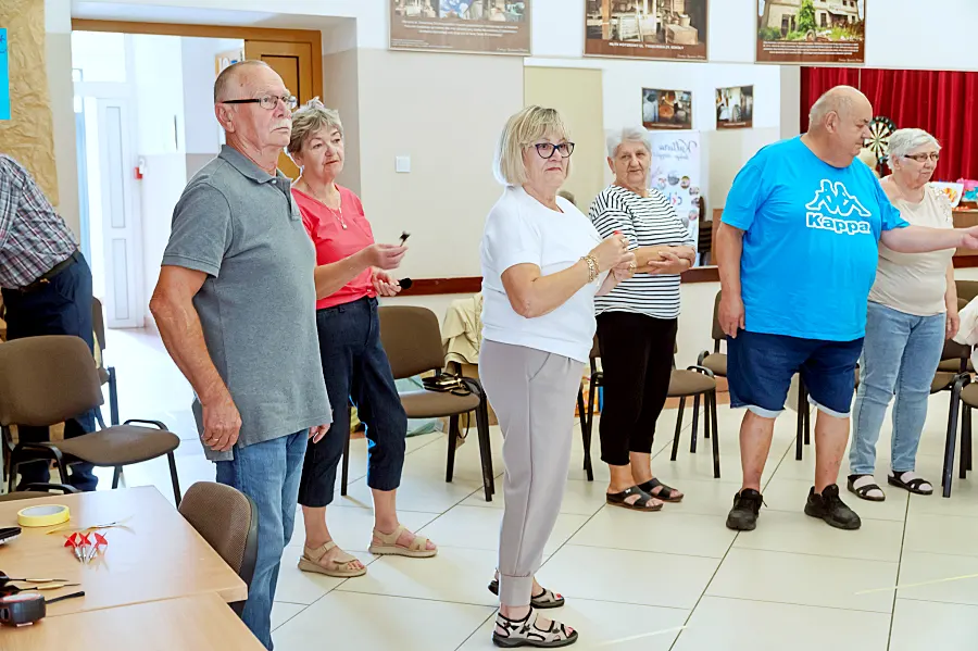 Członkowie Klubu Seniora w Sokołach spędzili minioną sobotę, 23 sierpnia, w nietypowy i aktywny sposób. Tego dnia zorganizowano dla nich specjalne warsztaty połączone z turniejem darta, popularnie znanego jako gra w lotki. Spotkanie, które obfitowało w nowe doświadczenia i sportowe emocje, poprowadził profesjonalny trener i zawodnik, Marcin Kozłowski.