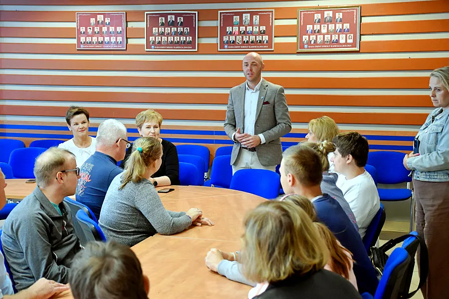 Urząd Gminy Sokoły gościł podopiecznych Warsztatów Terapii Zajęciowej "Kolektyw" w Starych Raciborach. Spotkanie, które poprowadził wójt Radosław Choiński, stało się okazją do poznania zasad funkcjonowania samorządu i rozmowy o sprawach ważnych dla lokalnej społeczności.