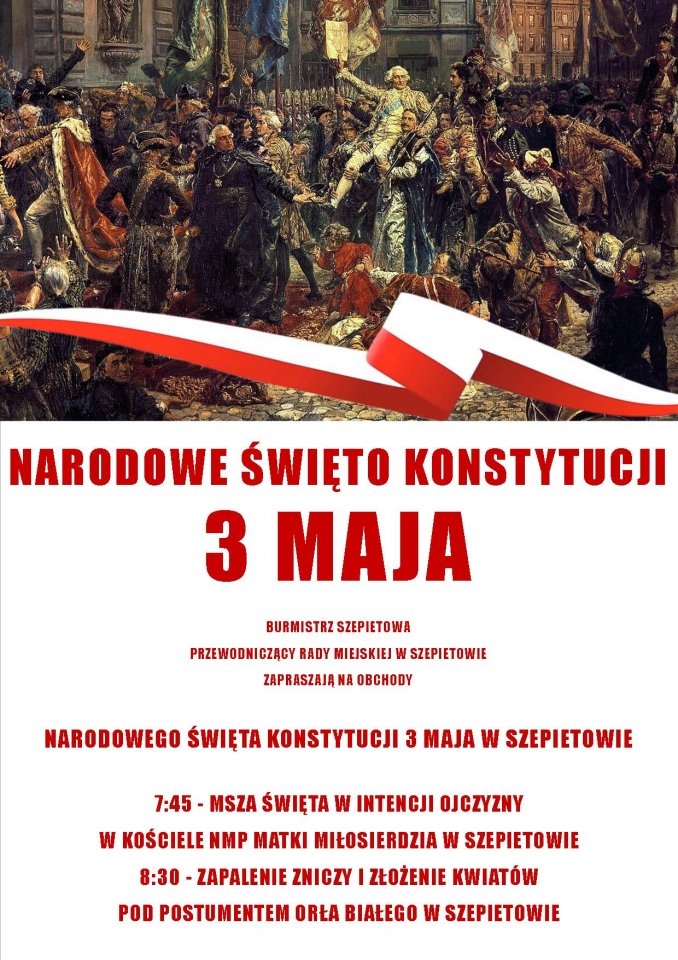 Zaproszenie na obchody 230. rocznicy uchwalenia Konstytucji 3 Maja w gminie Szepietowo.